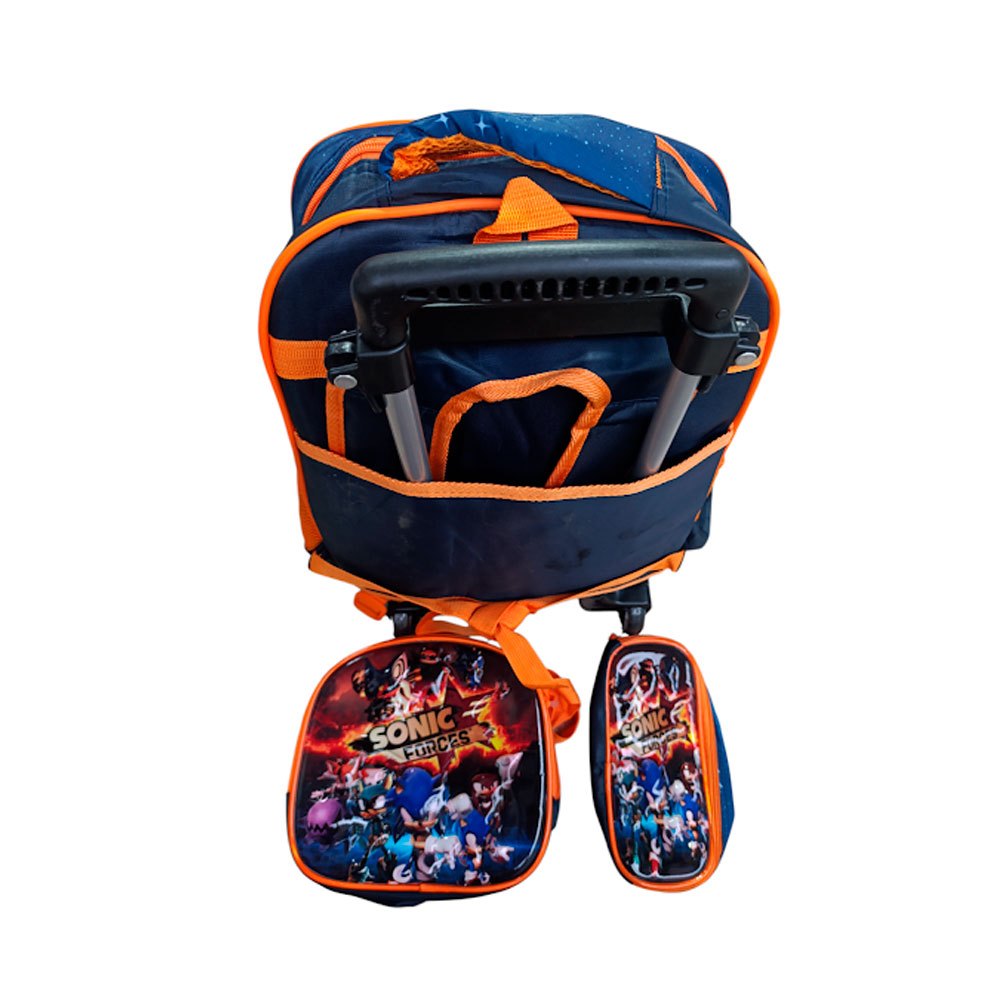 Kit Mochila Sonic 2 3D com Rodinhas + Lancheira Térmica + Estojo Escolar Infantil em Alto Relevo