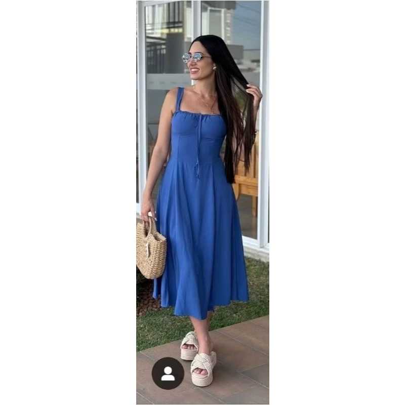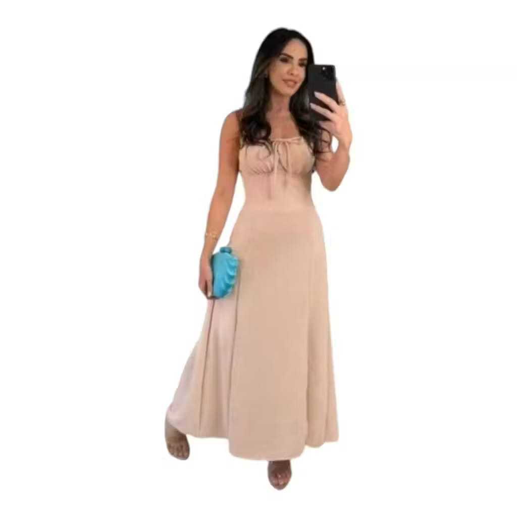 Vestido Midi Feminino Romântico Duna Premium com Lastex Costas Ajustável Casual Elegante Tendência 2026