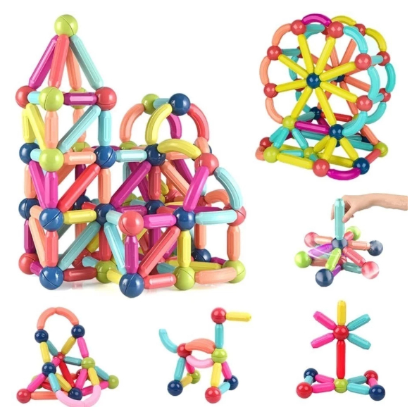 Blocos De Construção 3d Magnéticos Brinquedo ímã Varas Bolas Jogo Montagem Para Crianças 66/76/110/136 Peças