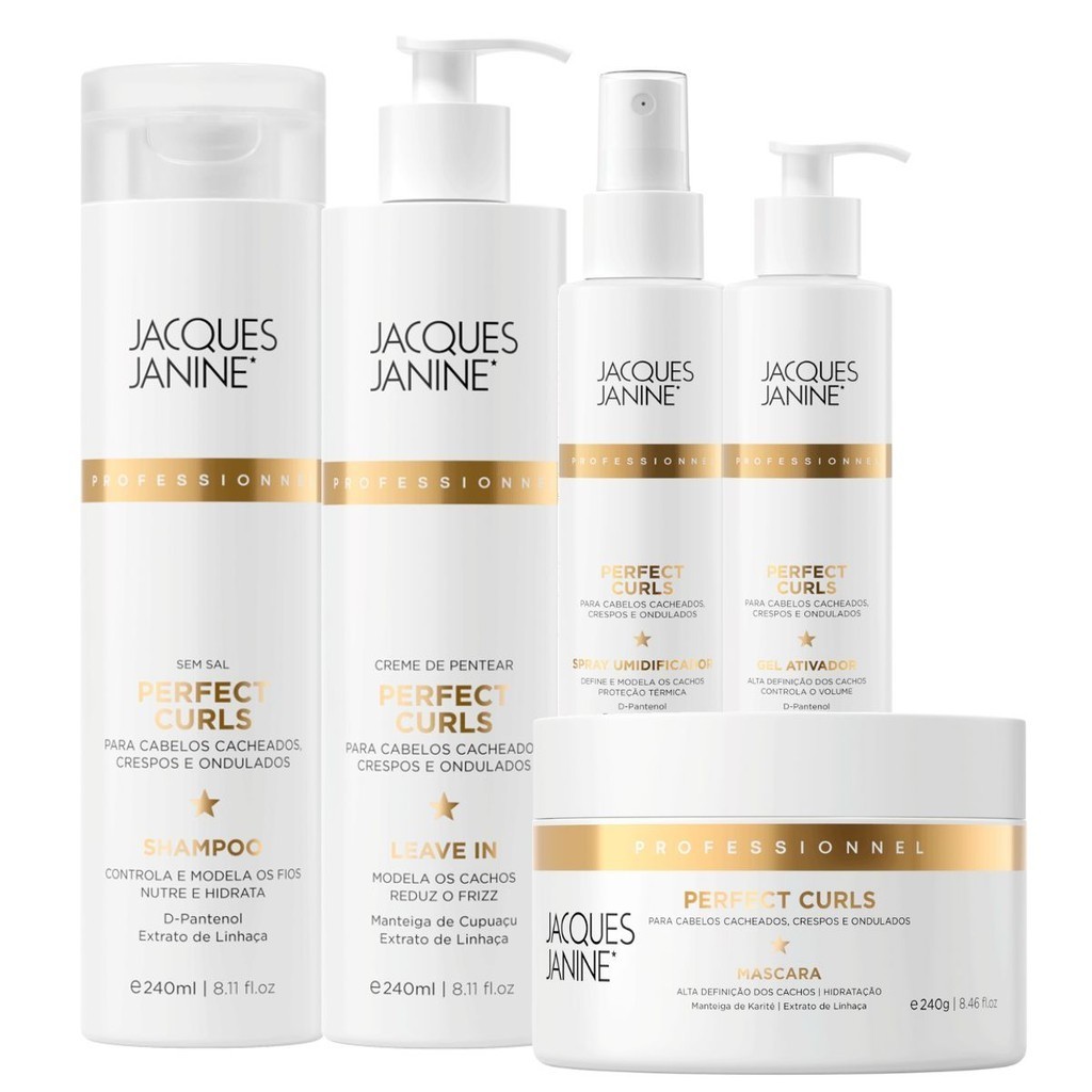 Kit Jacques Janine Power Perfect Curls Shampoo 240ml Máscara 240g Gel 120ml Spray Finalizador 120ml