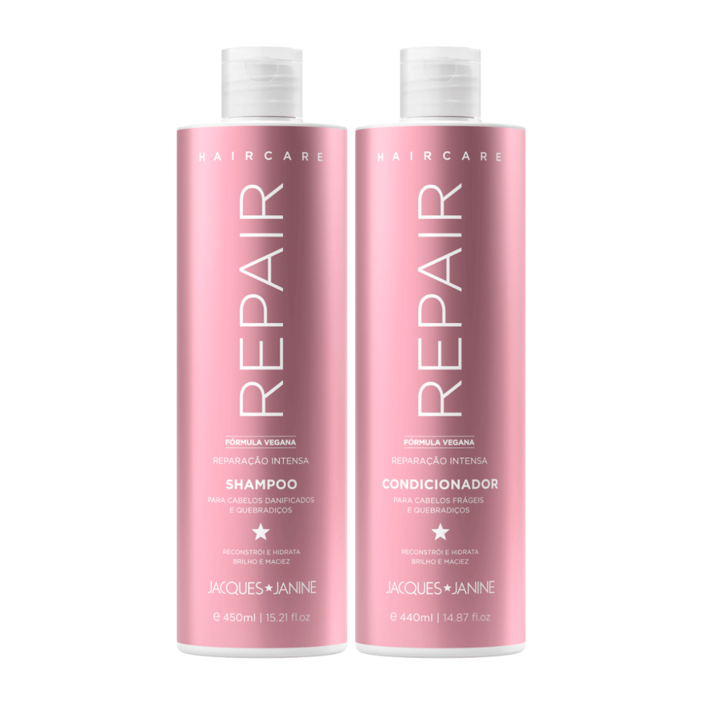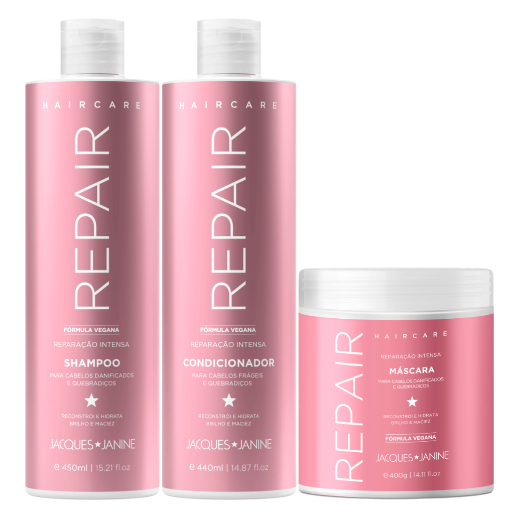 Kit Jacques Janine Hair Care Repair Shampoo 450ml Condicionador 440ml Máscara Reconstrução 400g