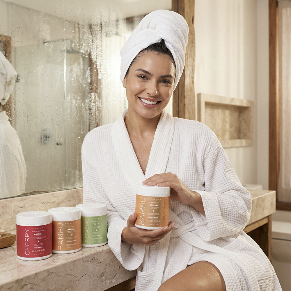 Máscaras Cronograma Jacques Janine Hidratação Nutrição Reconstrução Cereja Pistache Bambu 1200g
