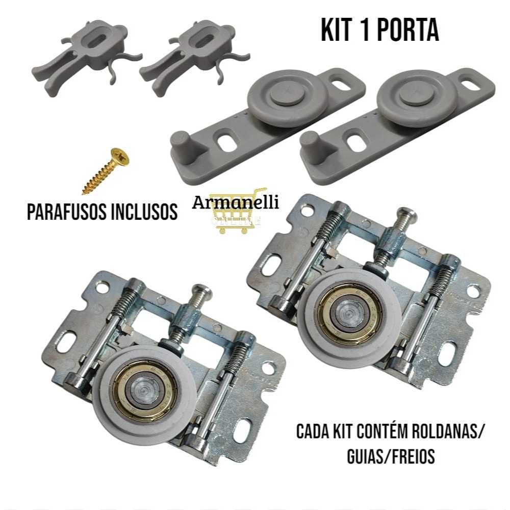 Kit Sistema FLEX01 Roldana/Guia/Freio 1-2-3 portas de correr guarda roupa suporta 50kg