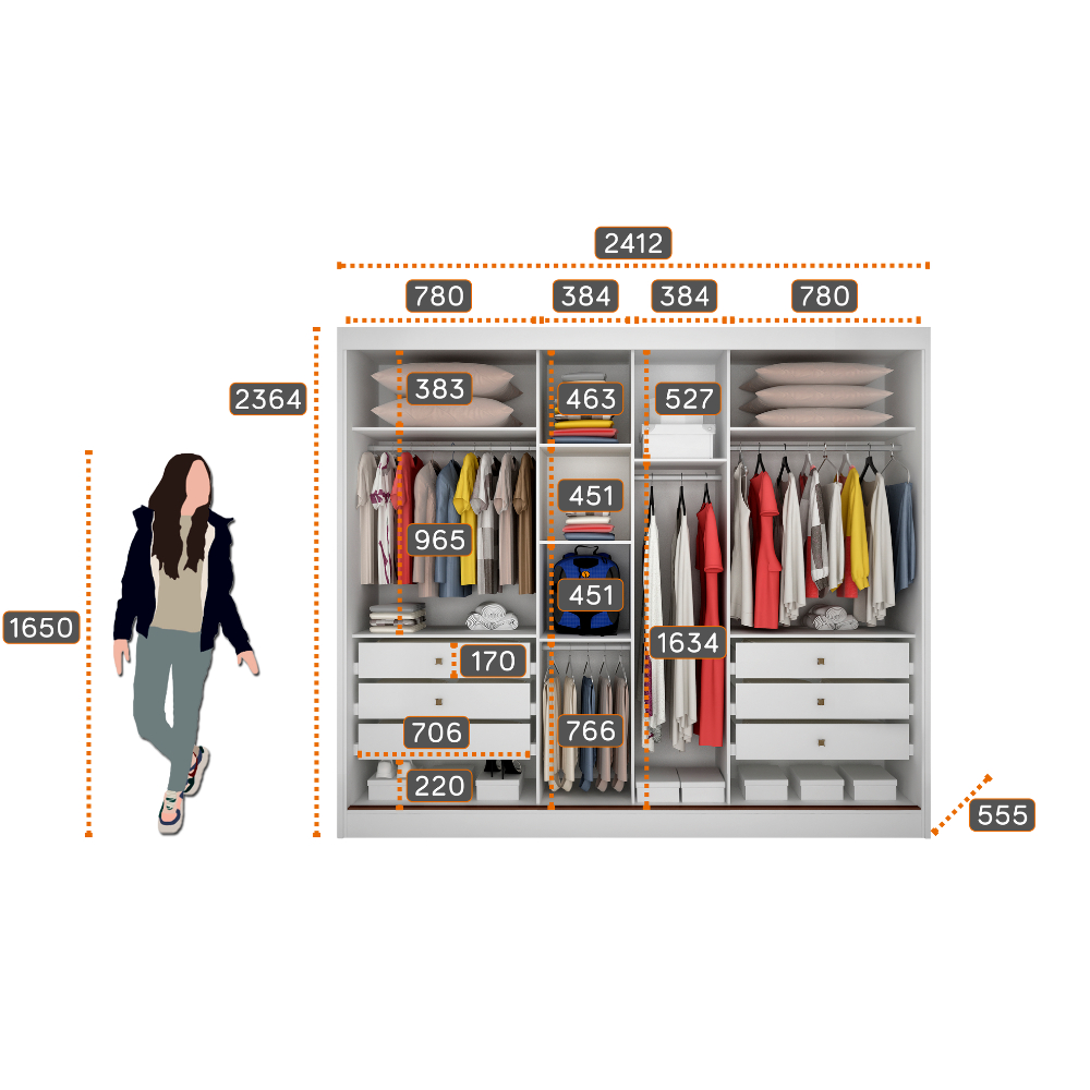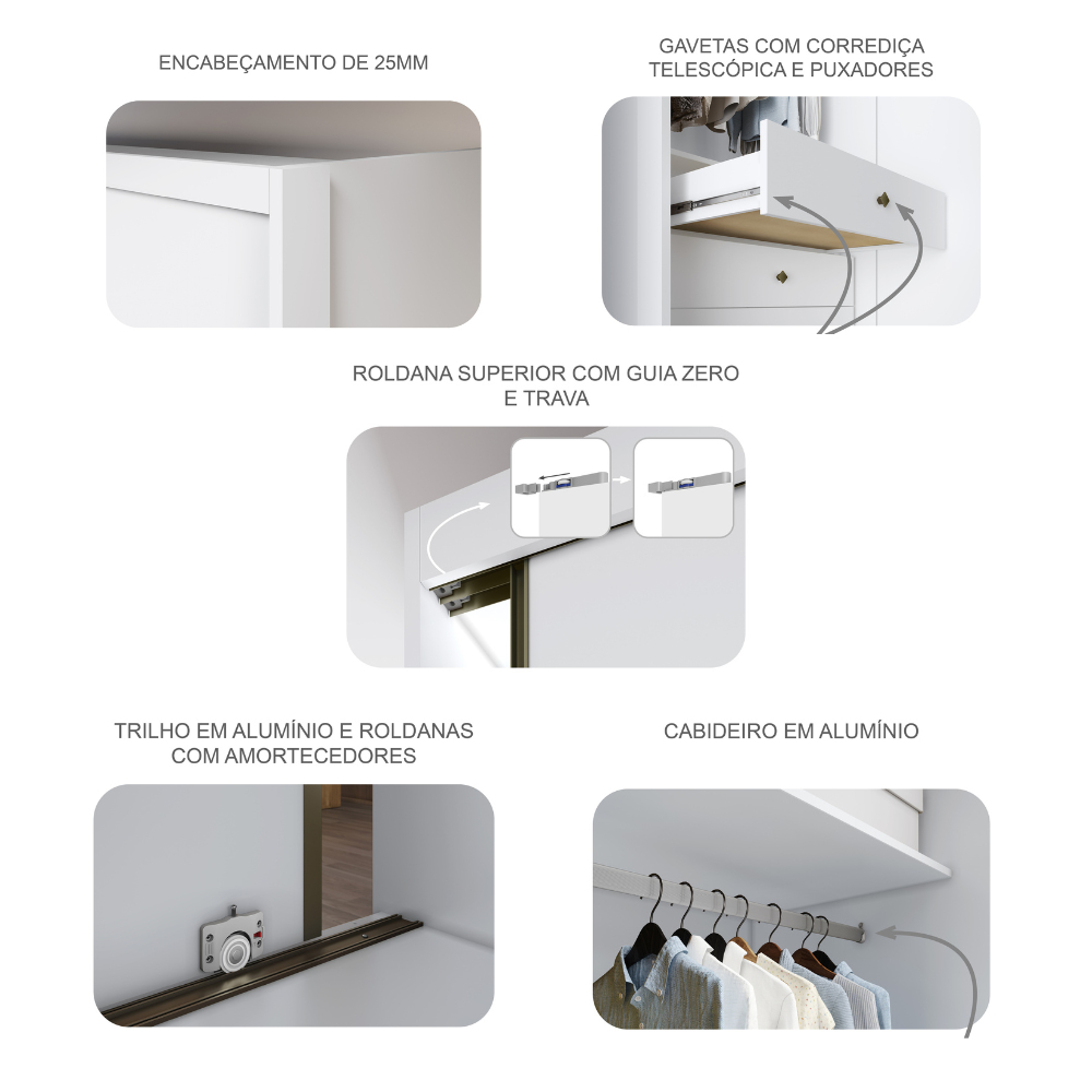 Guarda Roupa Casal 100% MDF Turim 3 Portas de Correr 6 Gavetas Una Mobília