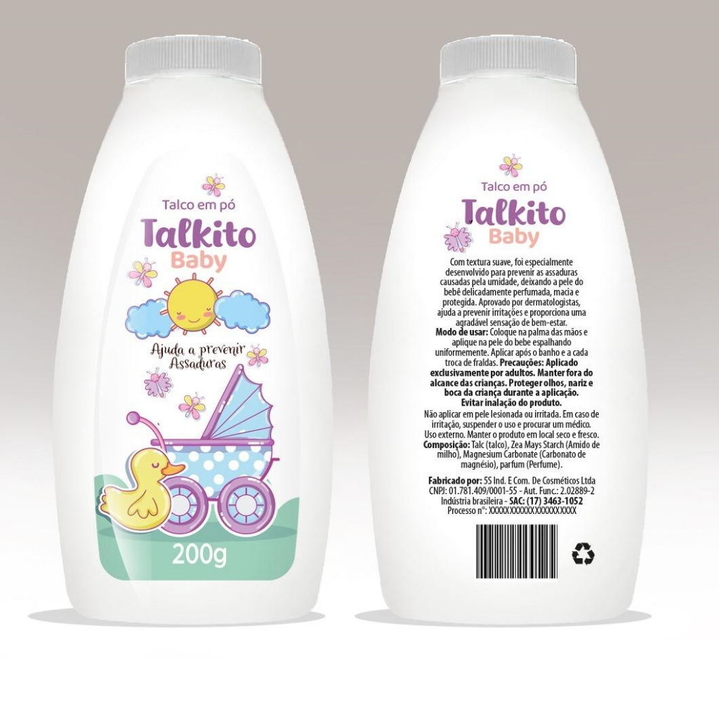 Kit 12un Talco em Pó Talkito Baby Premium 200gr Cada