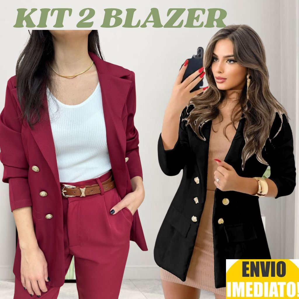 Kit 2 Blazer alfaiataria feminino Max/csaco, blezer com botoes, acinturado!