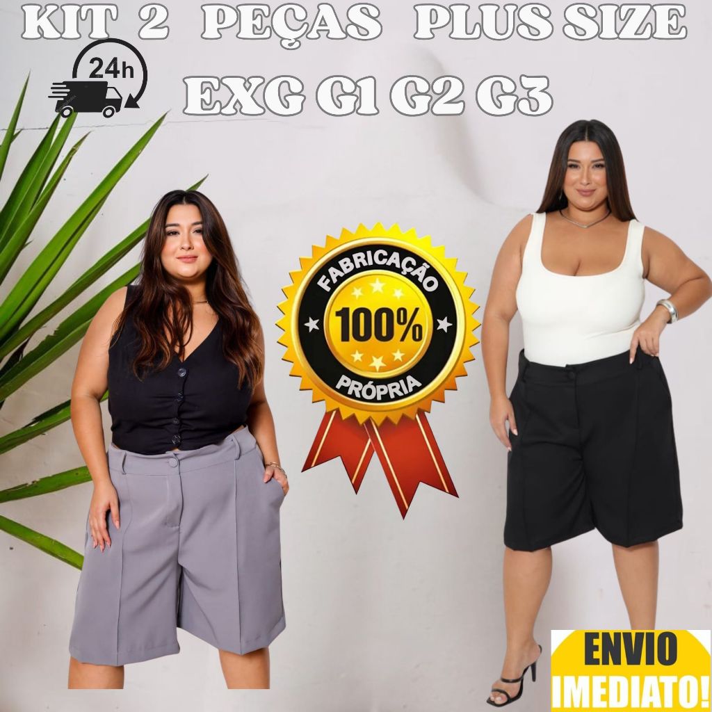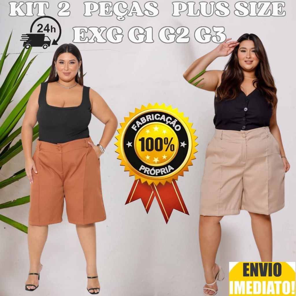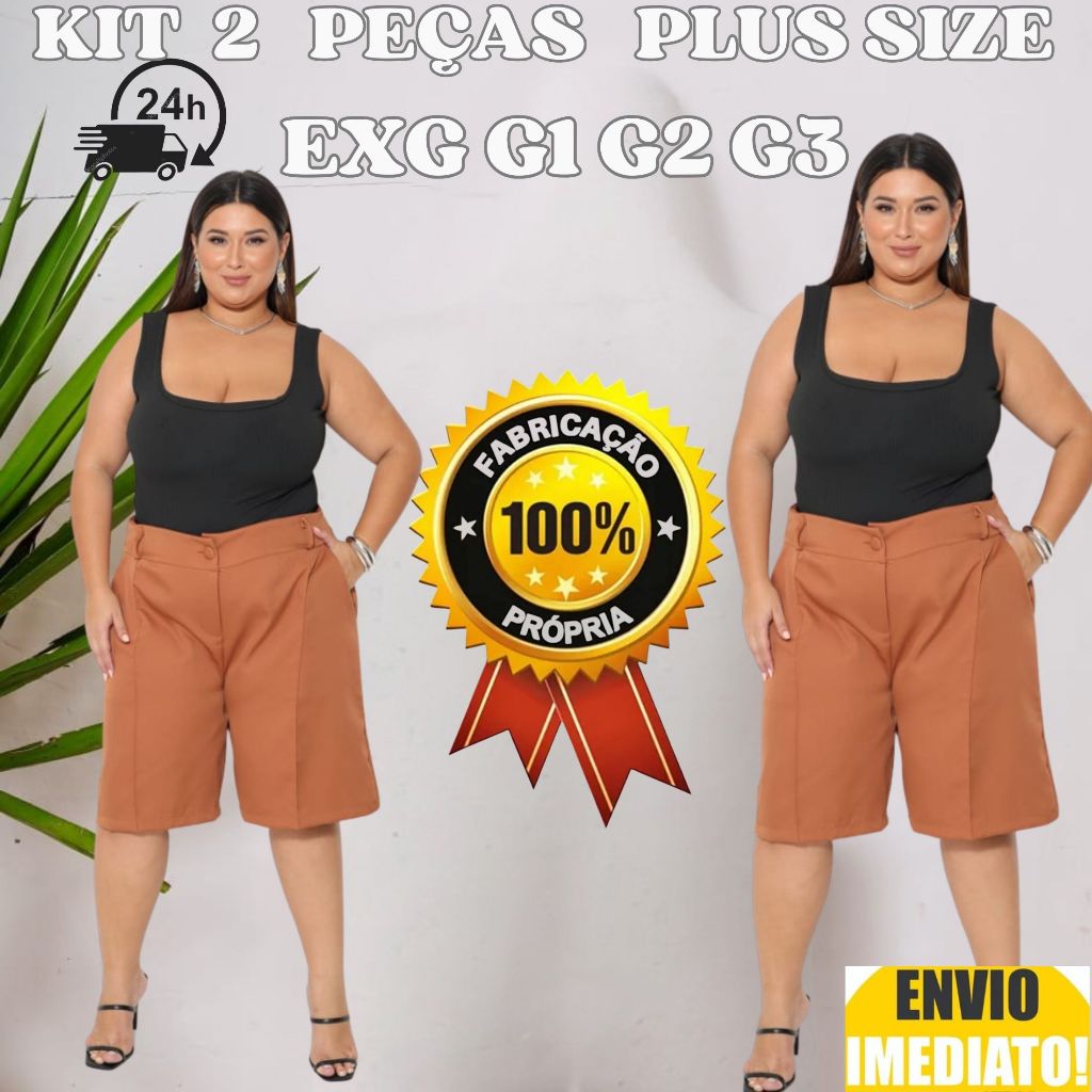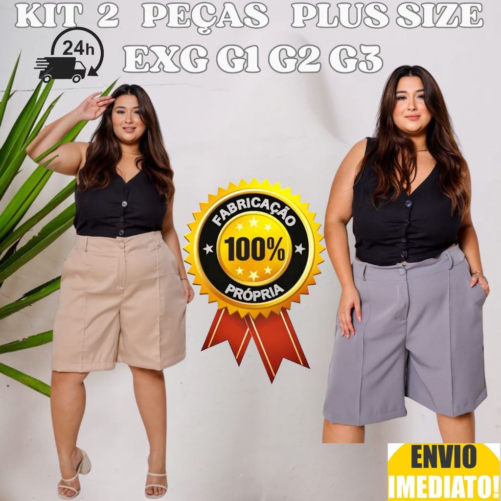 Kit 2 Bermuda Feminino Plus Size Alfaiataria Envio Imediato