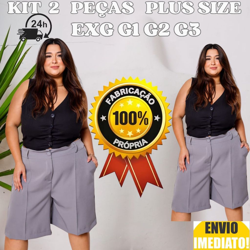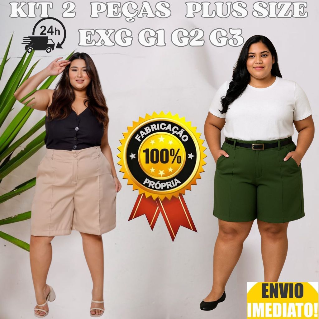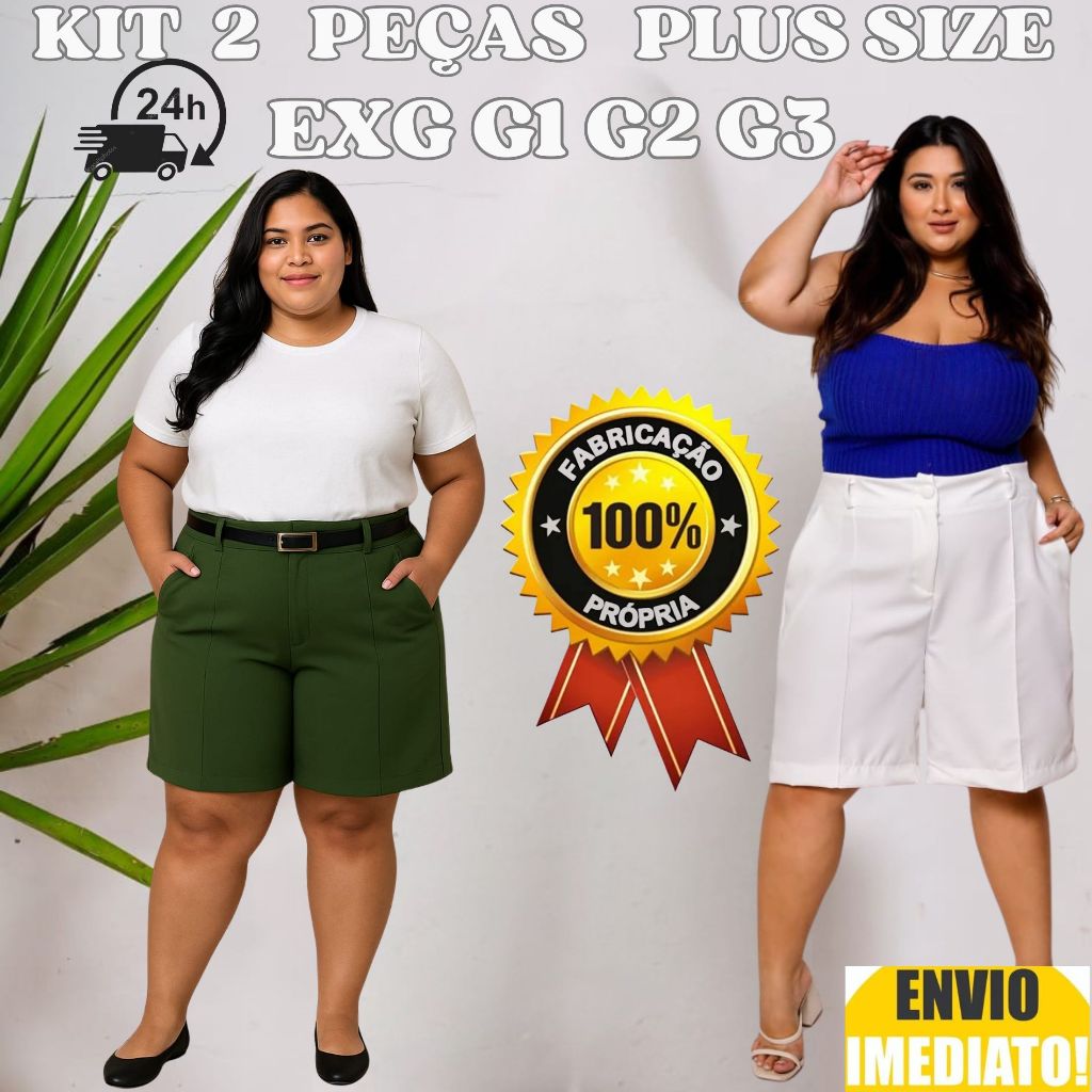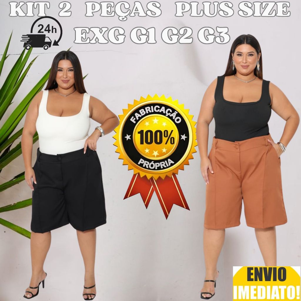 Kit 2 Bermuda Feminino Plus Size Alfaiataria Envio Imediato