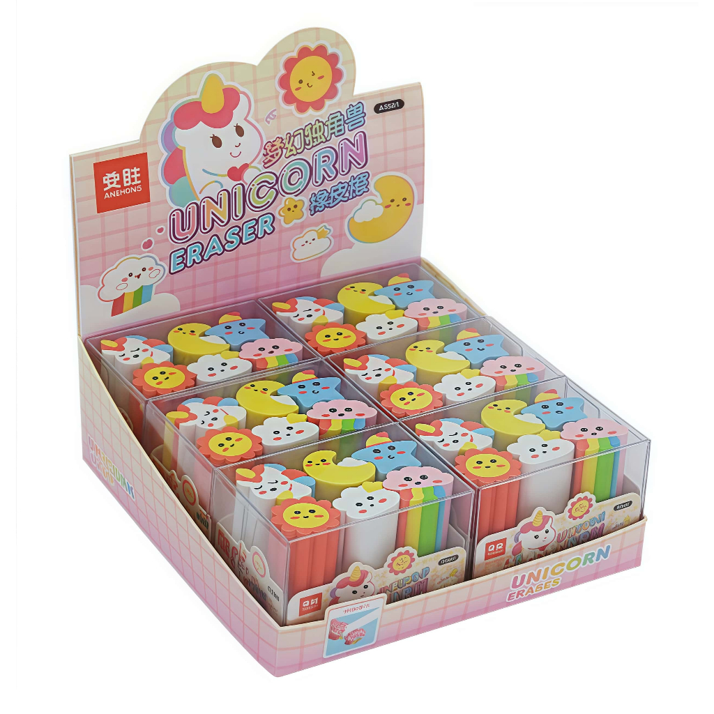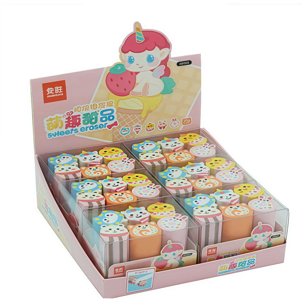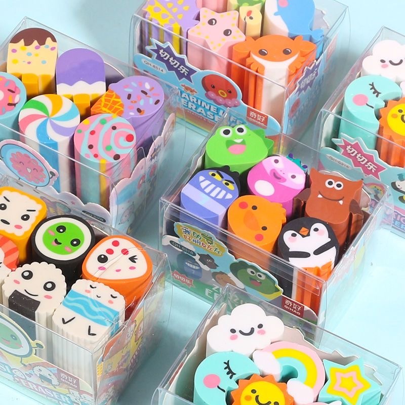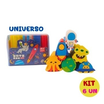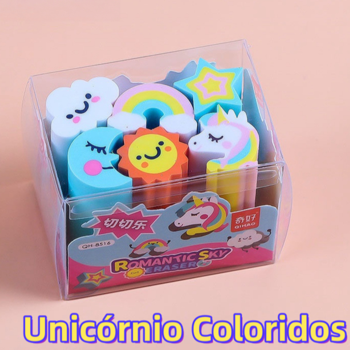 KIT COM 6 Borracha Escolar Ceu Romantico,Univero Colorido,frutas,sorvete picole e Aquatica Fofo Apagador