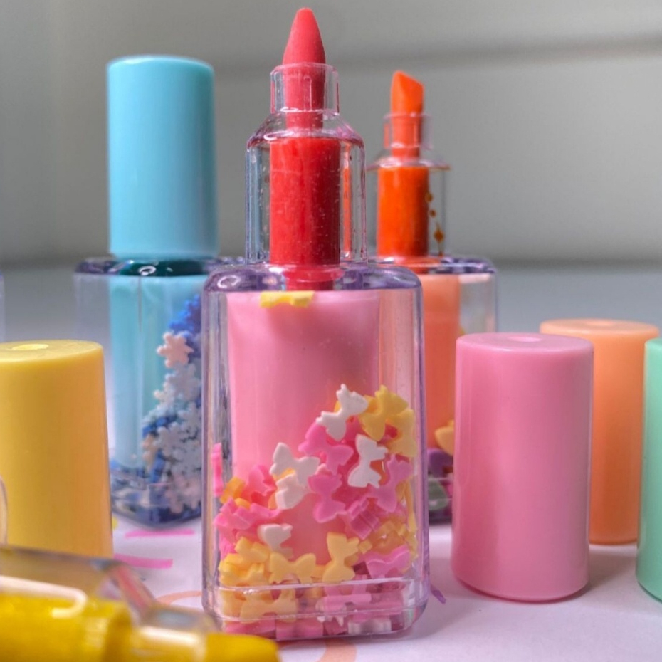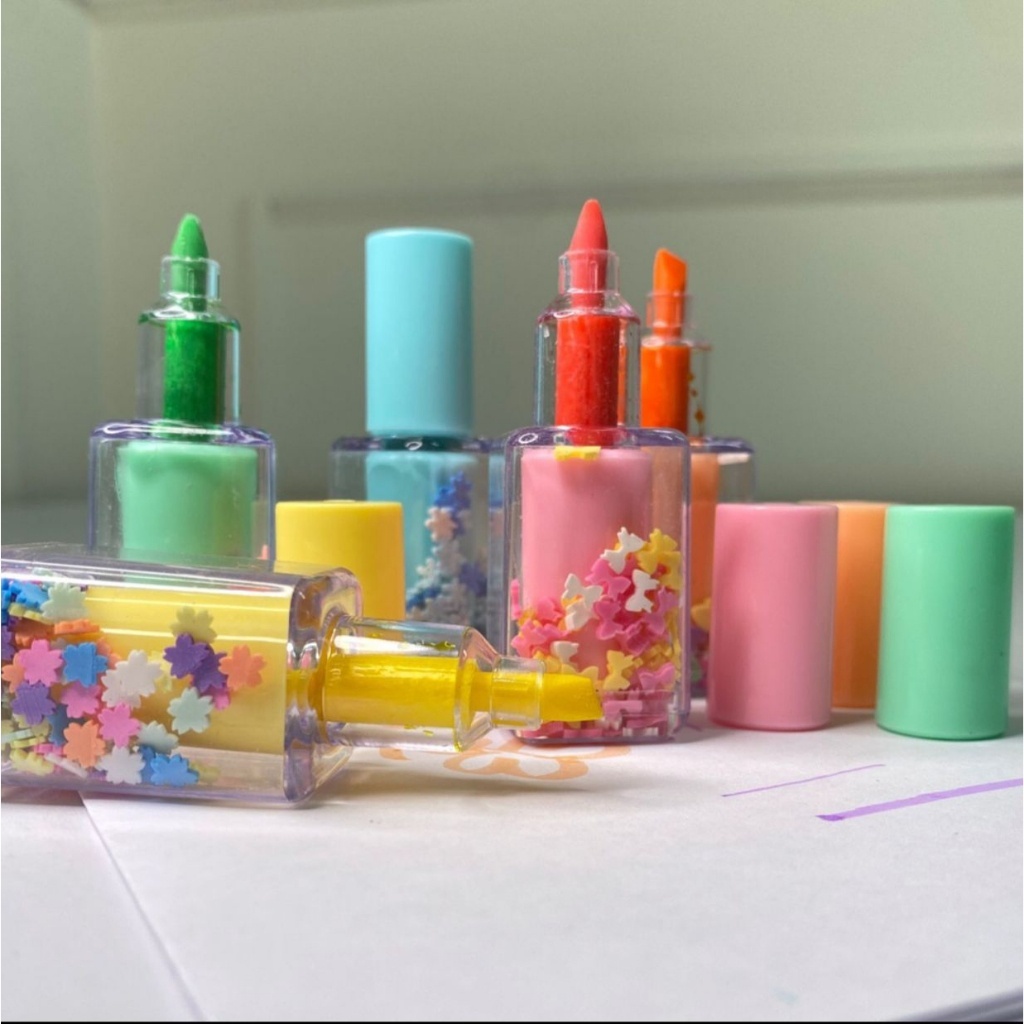 KIT 5 Cores marca texto divertidos modelo esmalte tons pastéis/fluorescência/material escolar/mini marca texto/lembrancinha