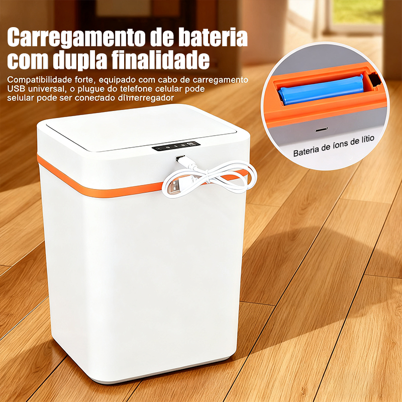 Lixeira Com Sensor Automático Inteligente 15 Litros Abre Fácil Toque Aproximação VITOR