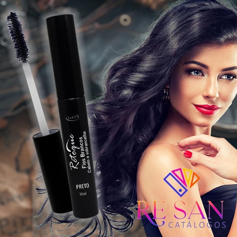 Retoque Preto Maquiagem Disfarce Fios Brancos Cabelos e Sobrancelhas Cobre Fios e Raízes 10 ml Lucys