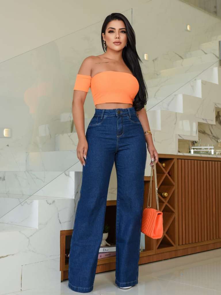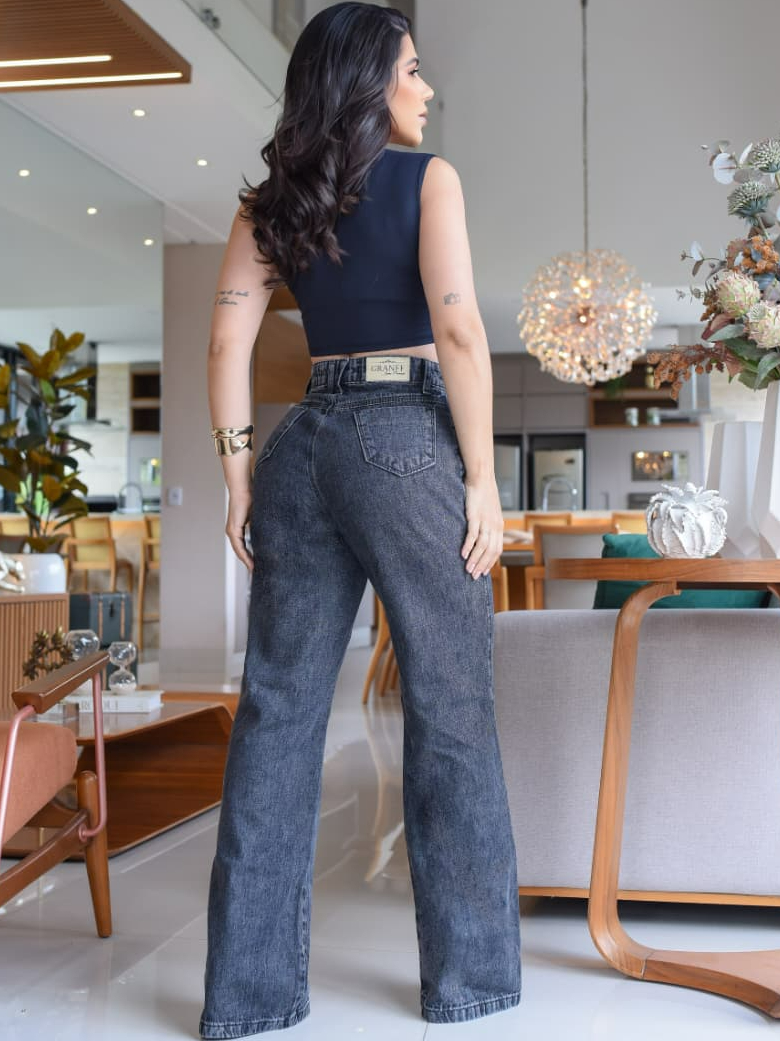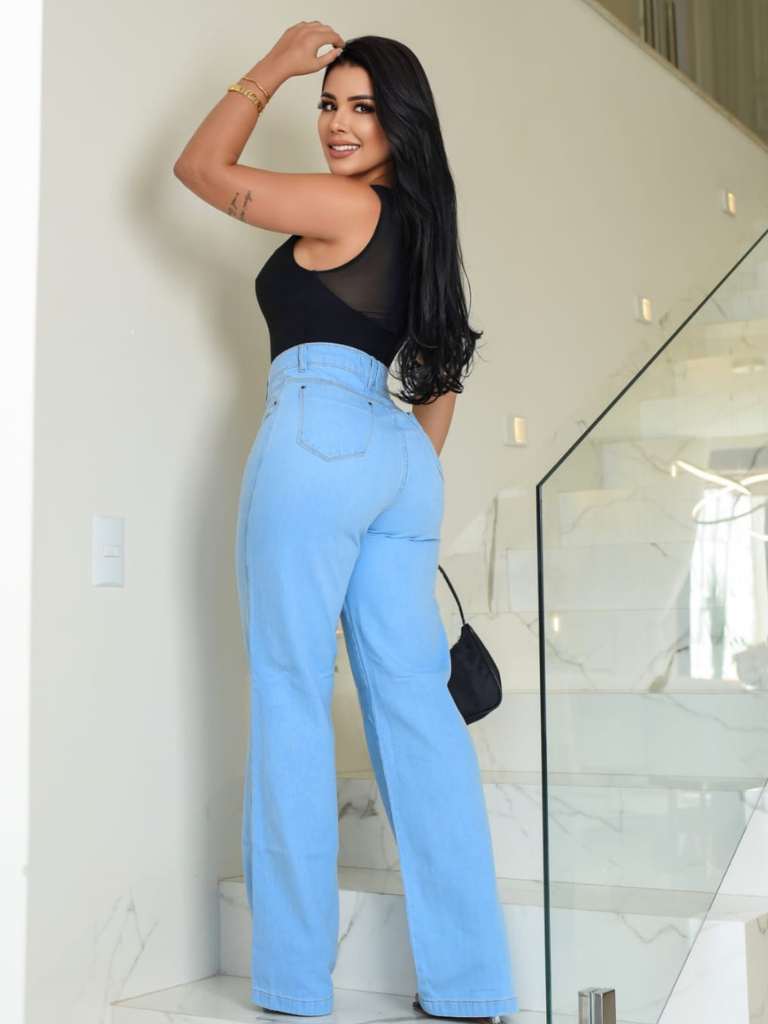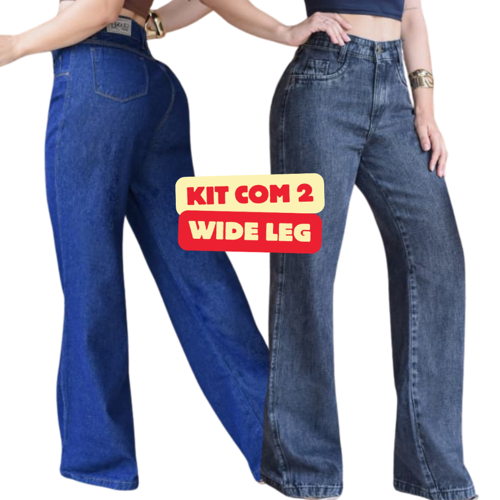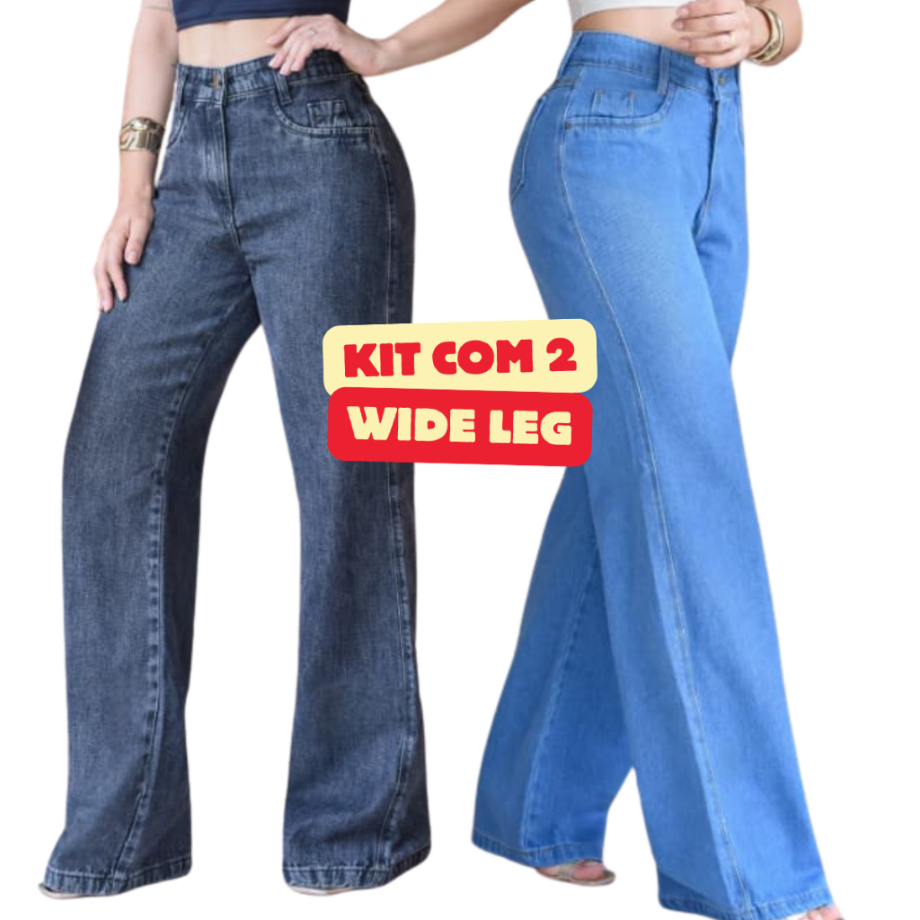 Kit 2 Calças Jeans Wide Leg Pantalona Feminina Clara e Escura Cós Alto Cintura Alta Modeladora
