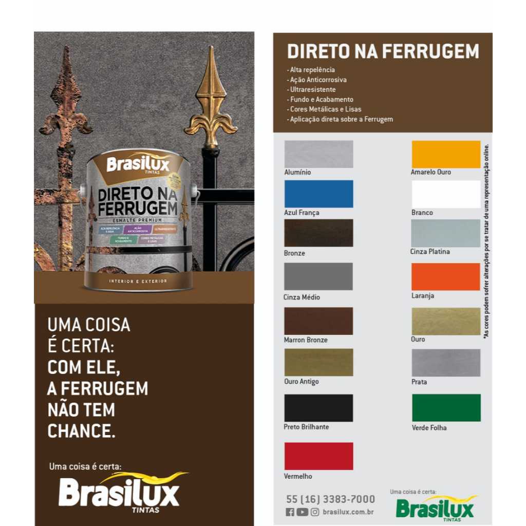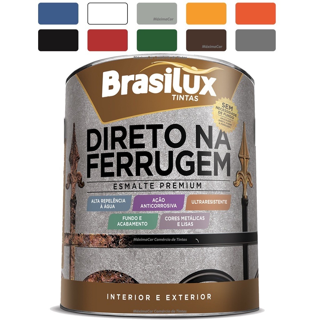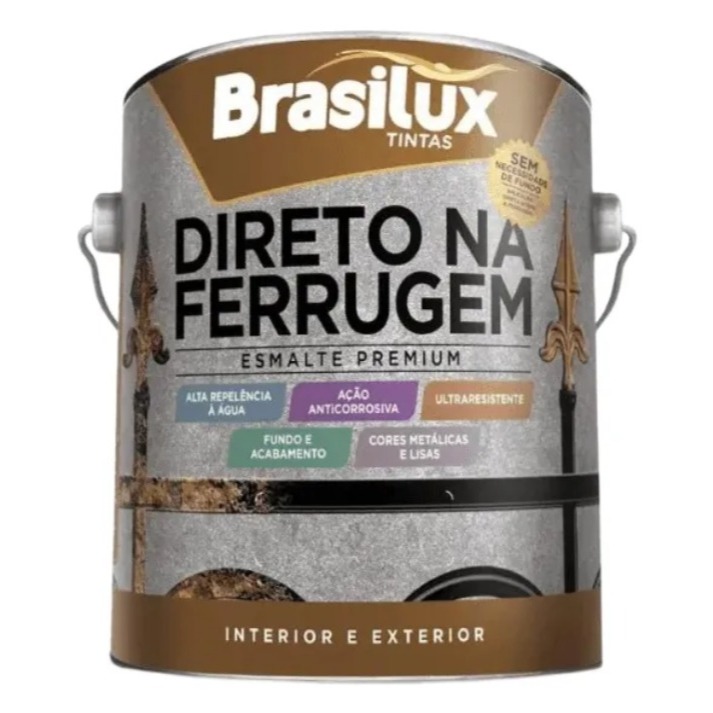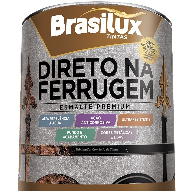 Tinta Esmalte Bronze Brilhante Premium Direto na Ferrugem 900ml e 3,6L Brasilux - Fundo e Acabamento