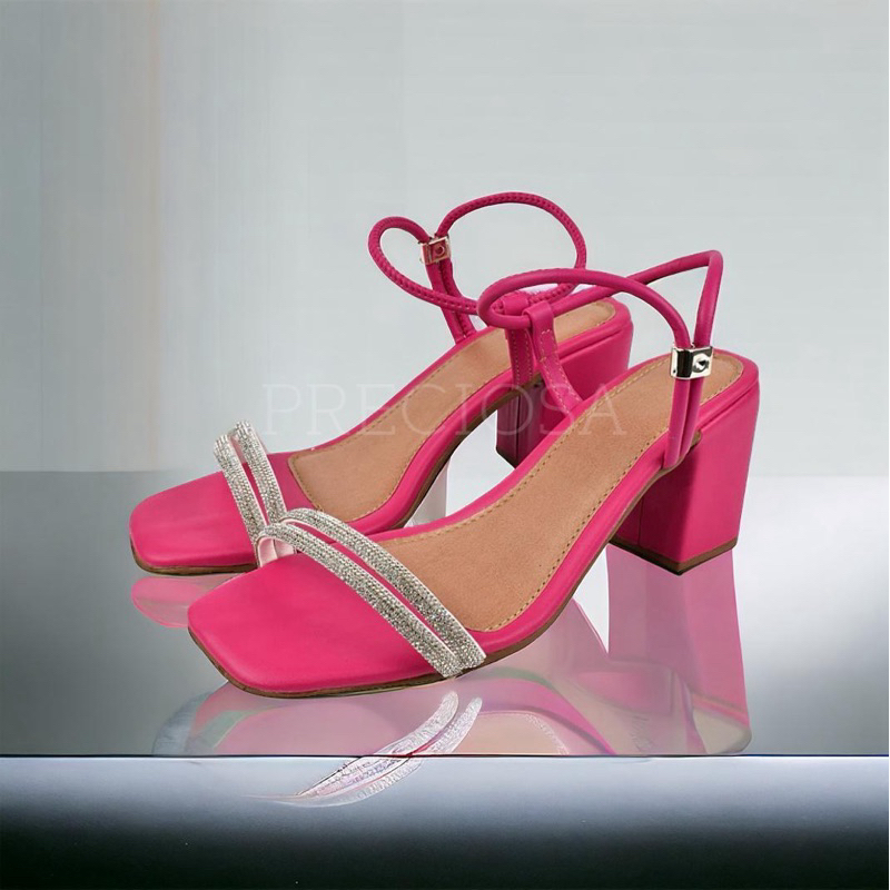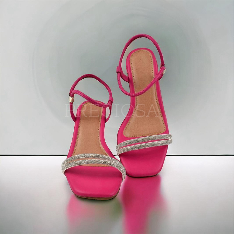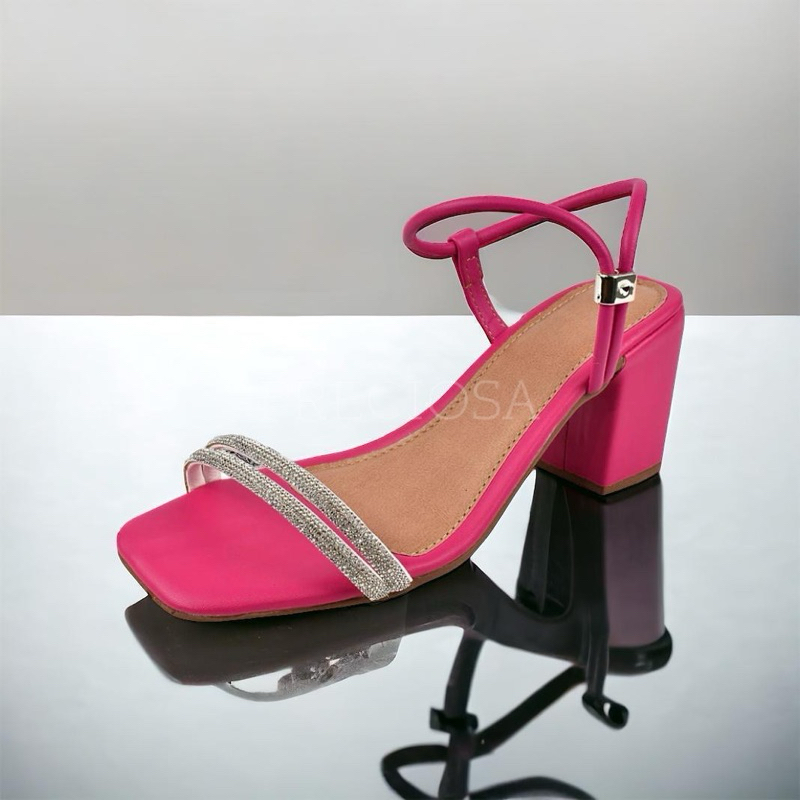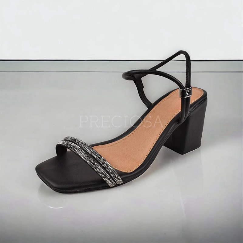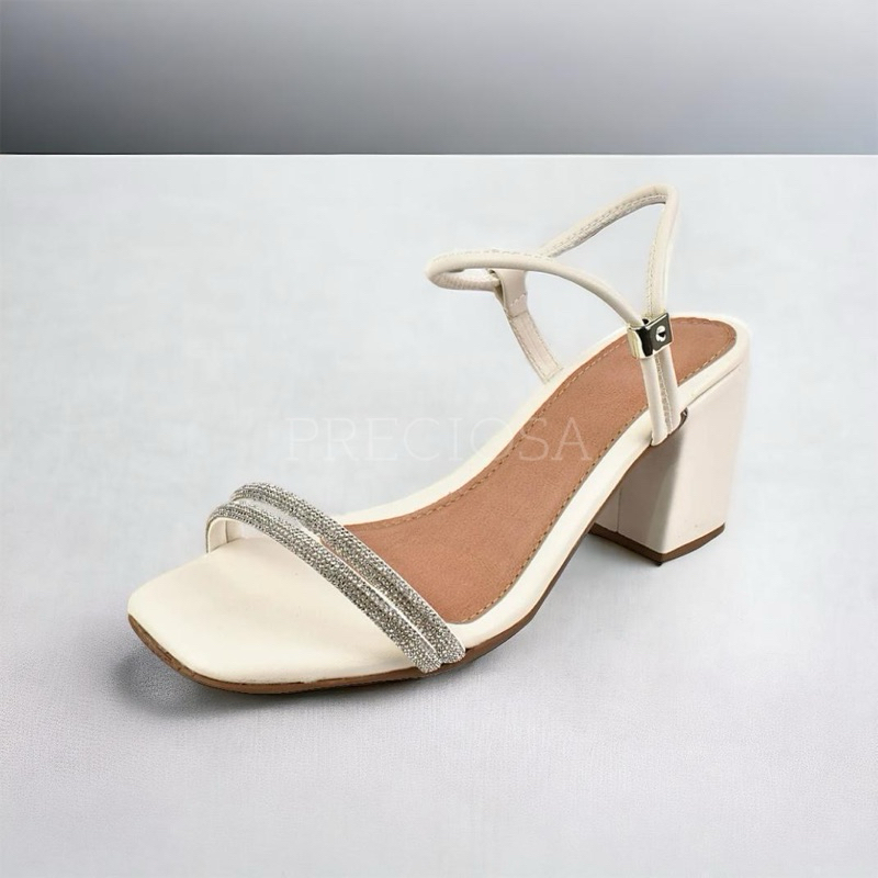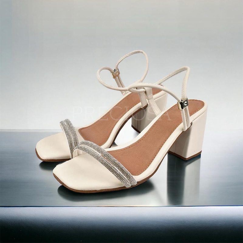 SANDALIA FEMININA SALTO BLOCO MEDIO TIRA STRASS CALÇE FACIL CONFORT