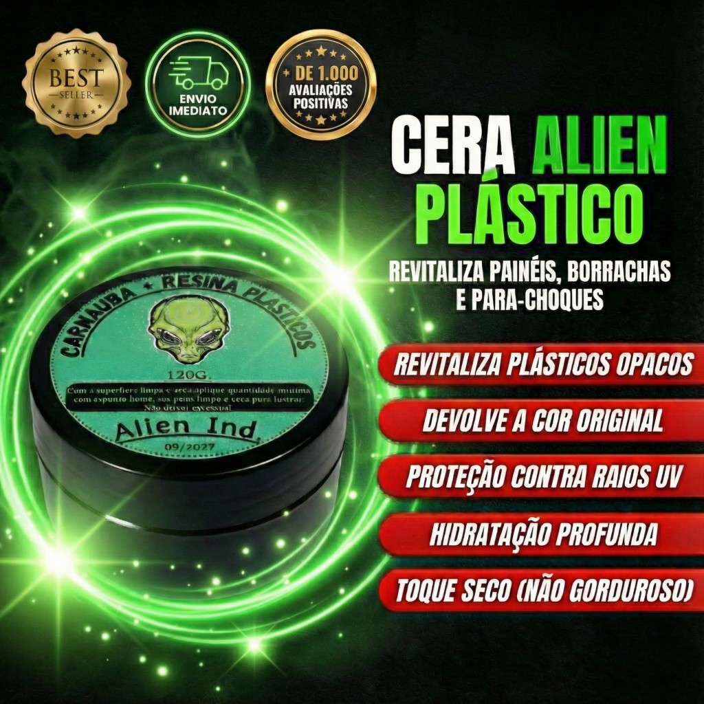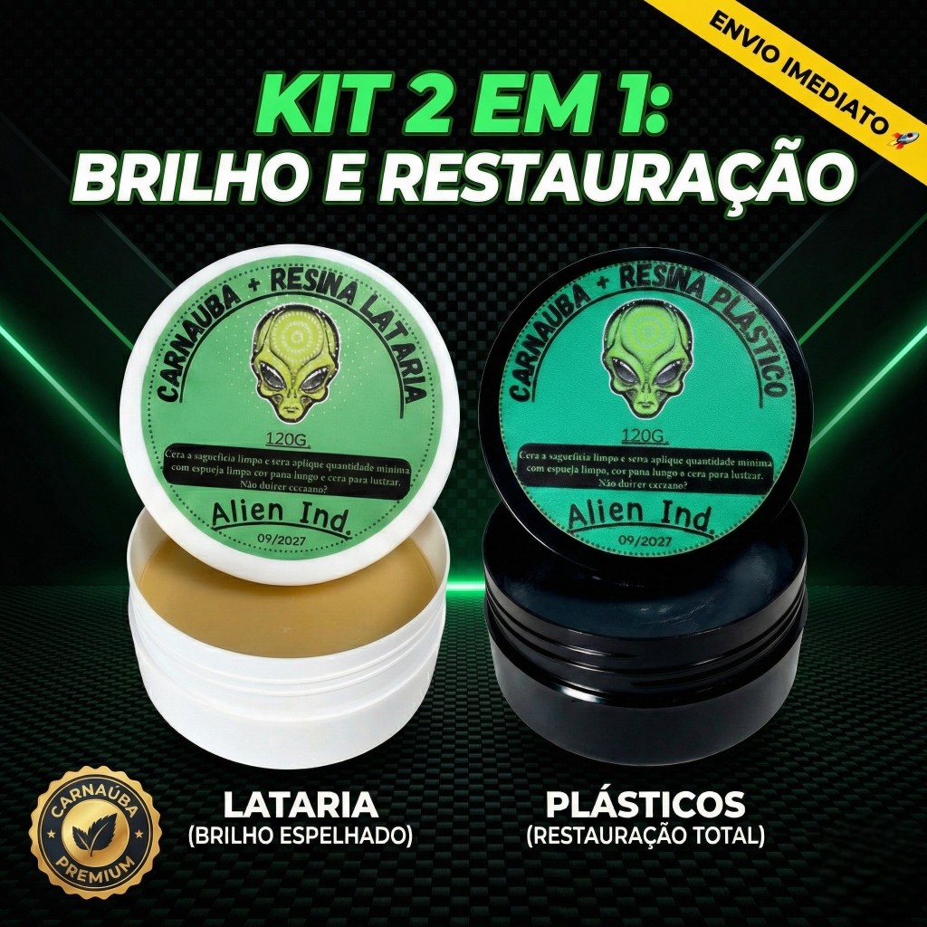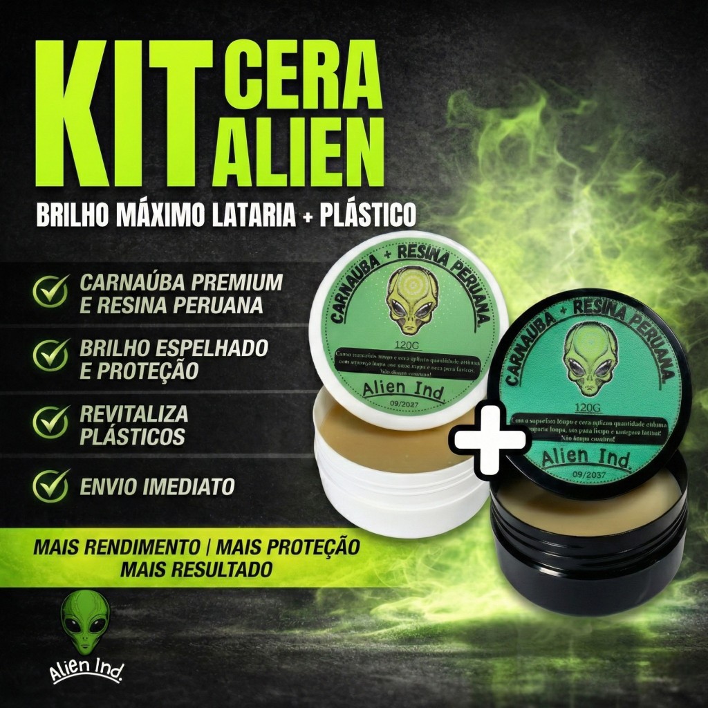 Kit 02 Ceras Alien Automotiva Lataria & Plástico Carnaúba - Brilho e Revitalização P/ Carros e Motos