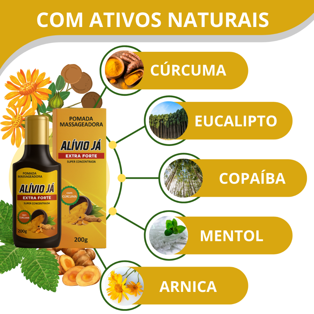 Pomada para dor Massageadora 200g Extra Forte com Arnica Cúrcuma Copaíba e Mentol Alívio Já