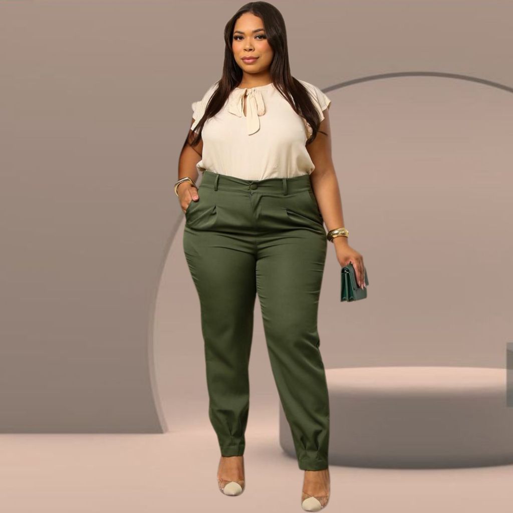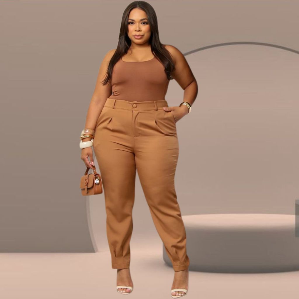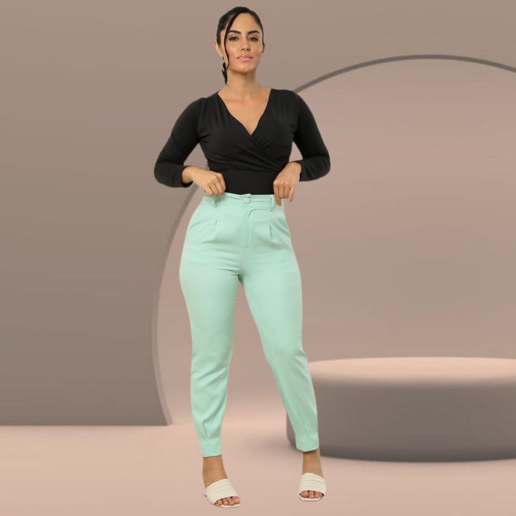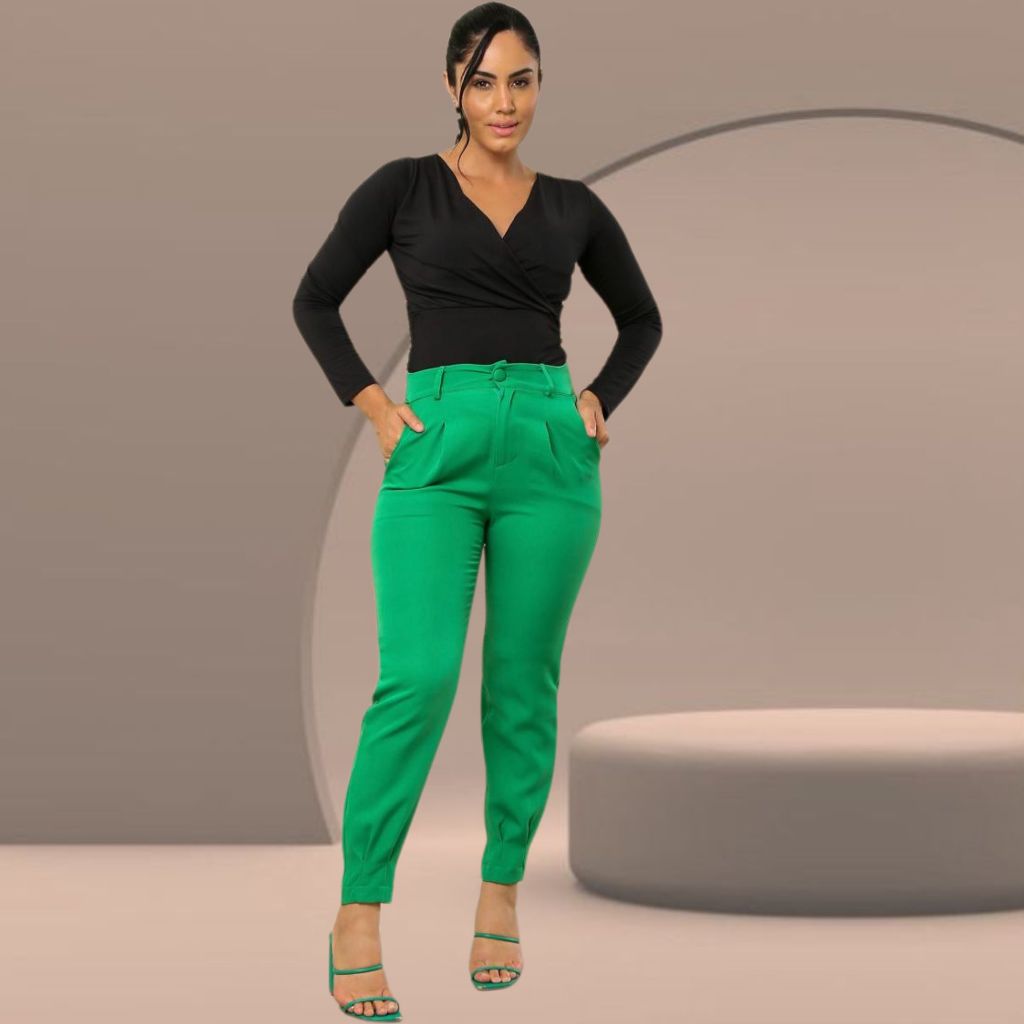 Calça Feminina Cenoura Alfaiataria Premium com Cintura Alta, Bolsos e Modelagem Confort Plus