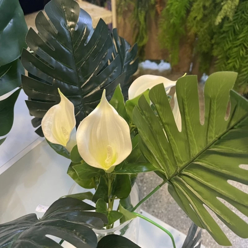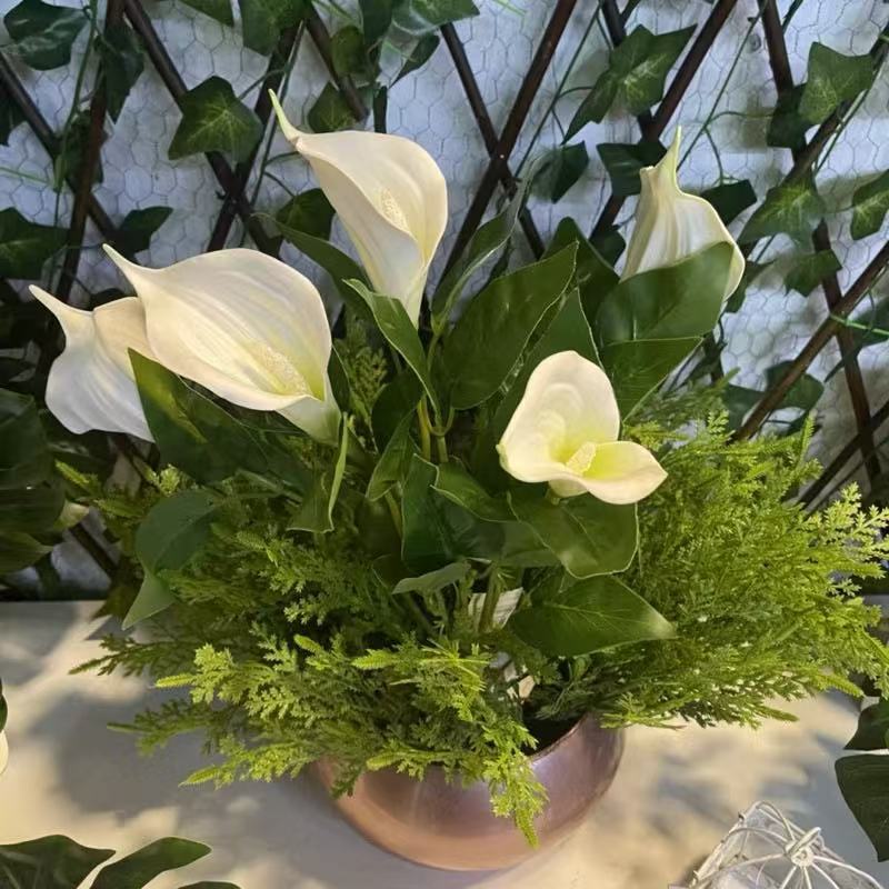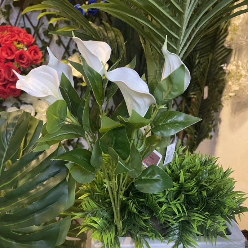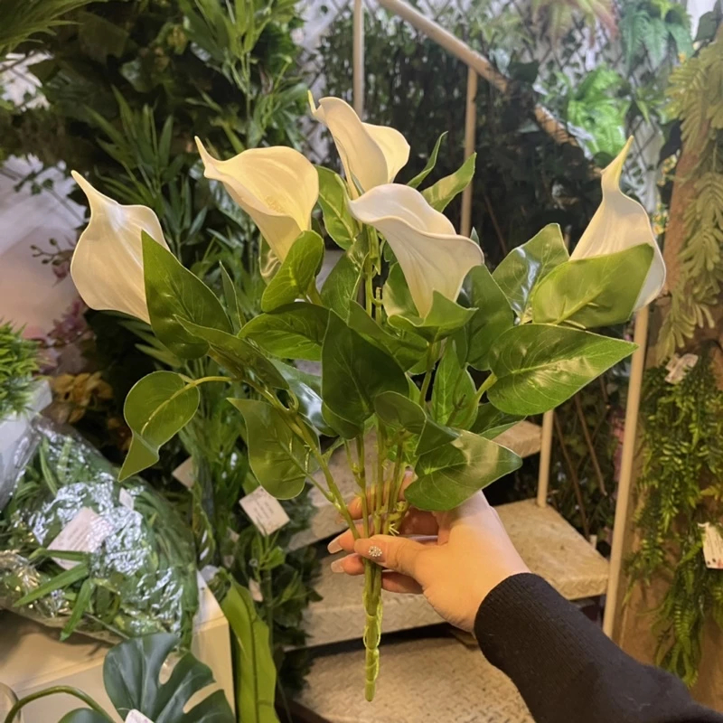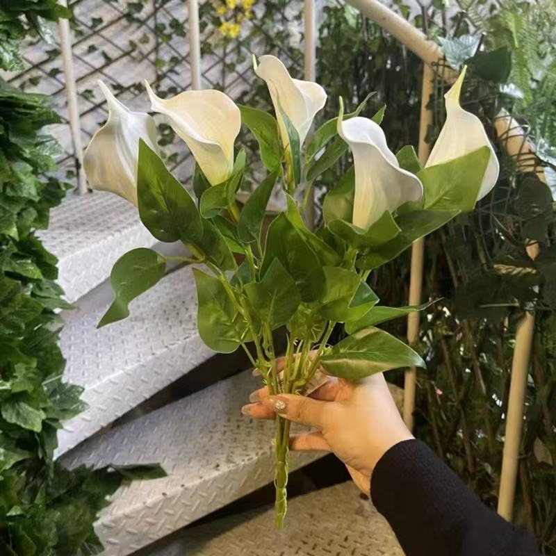 Buquê de Lírio Copo de Leite Artificial 45cm com Folhas – Flor Artificial para Decoração de Mesa