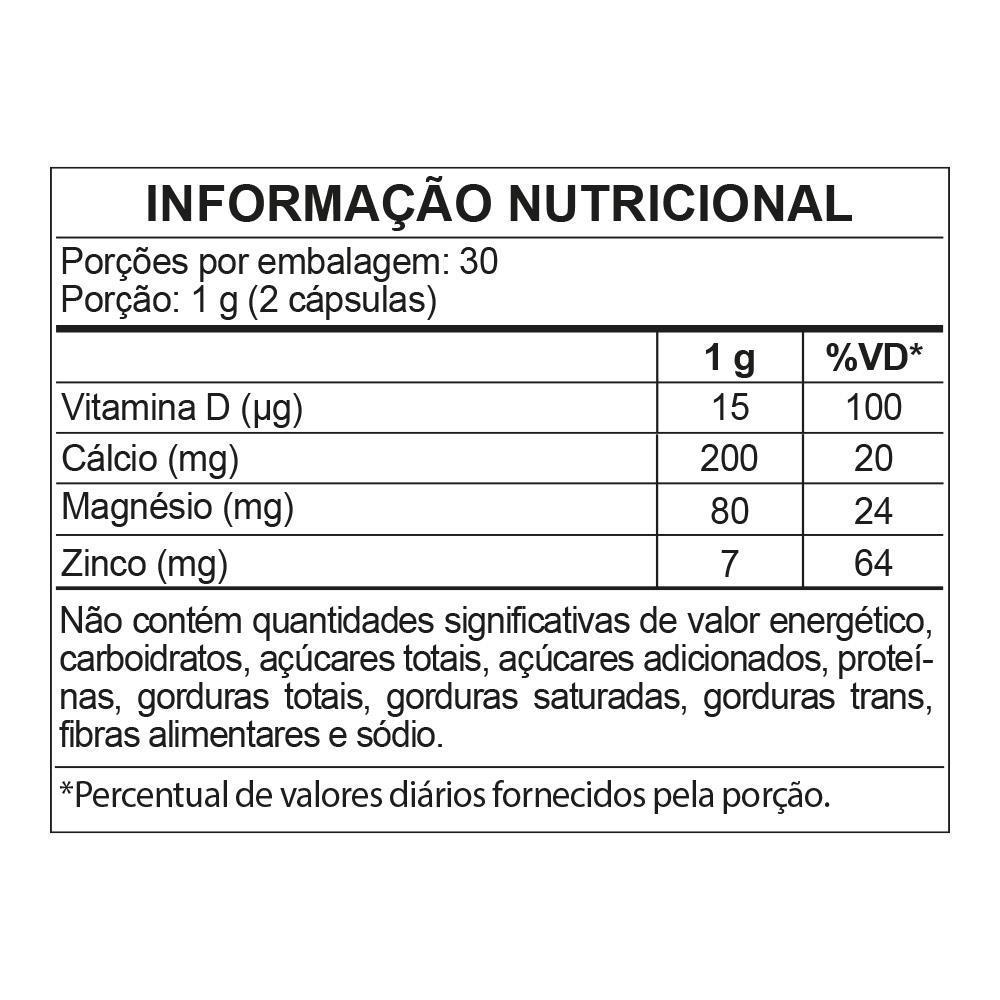 CÁLCIO, MAGNÉSIO, ZINCO E VITAMINA D3 COM 60 CÁPSULAS