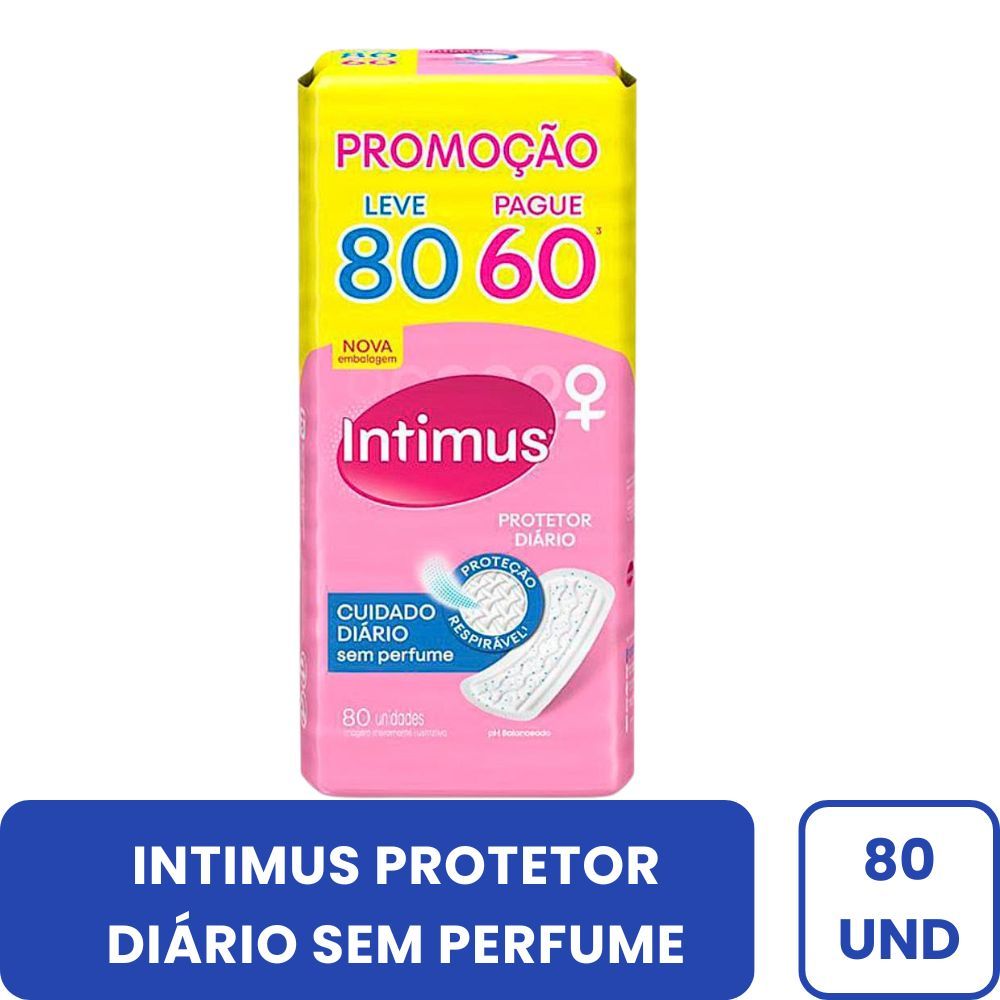 INTIMUS PROTETOR DIÁRIO SEM PERFUME COM 80 UNIDADES