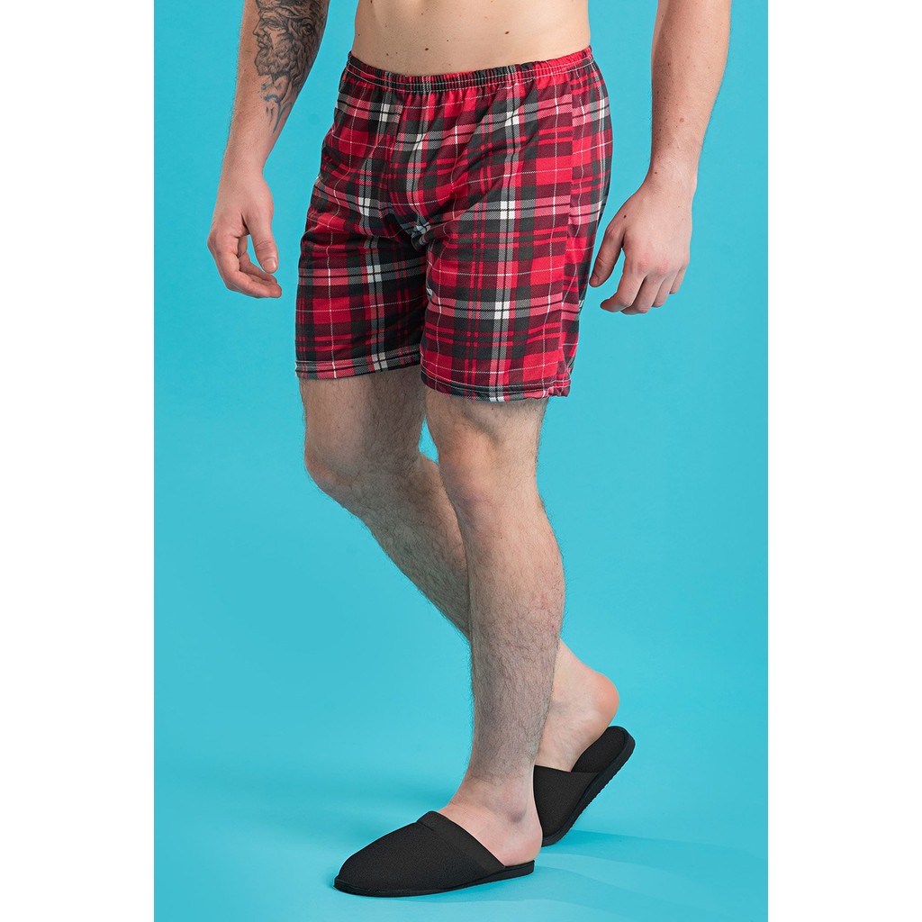 Short Samba Canção Xadrez Vermelho Confortável