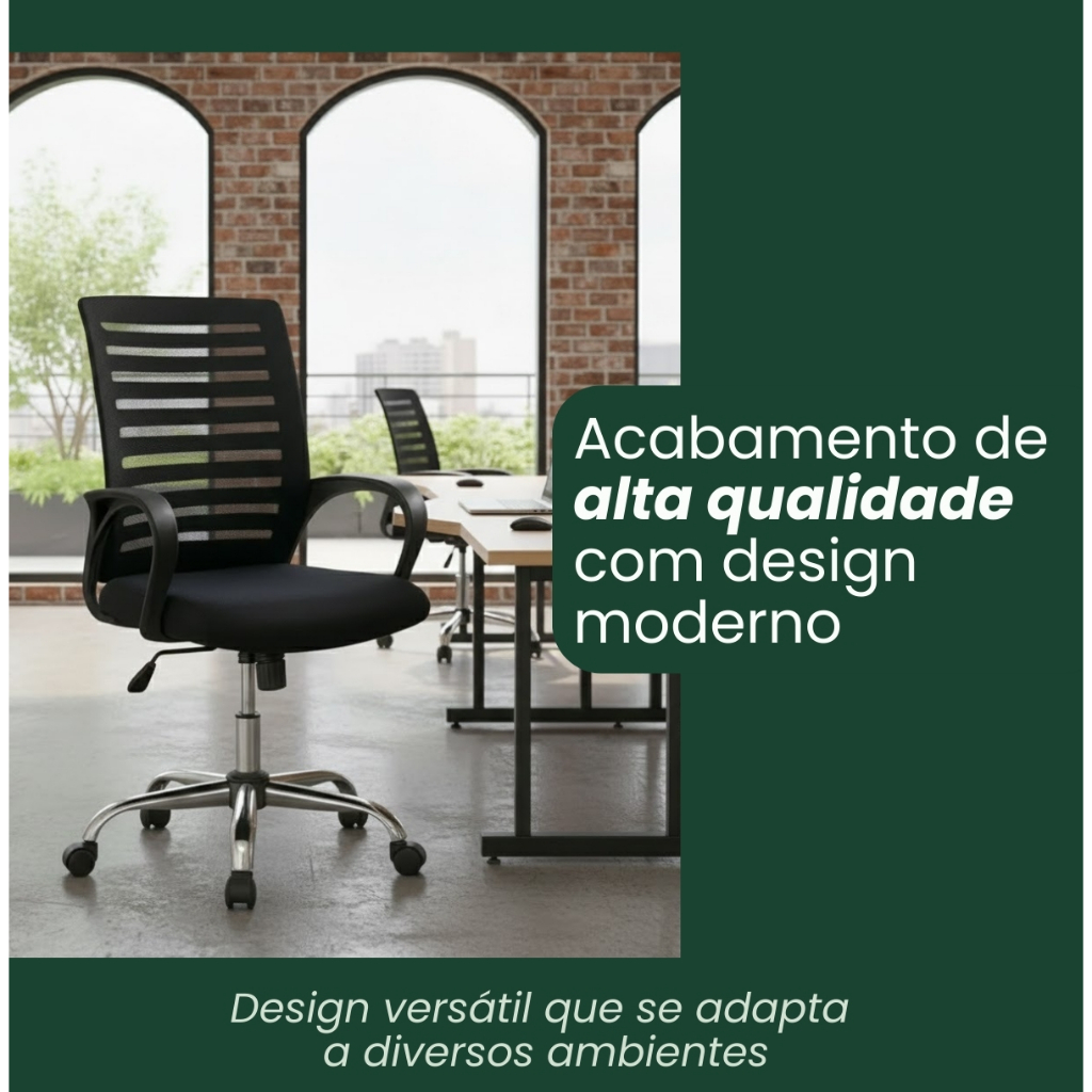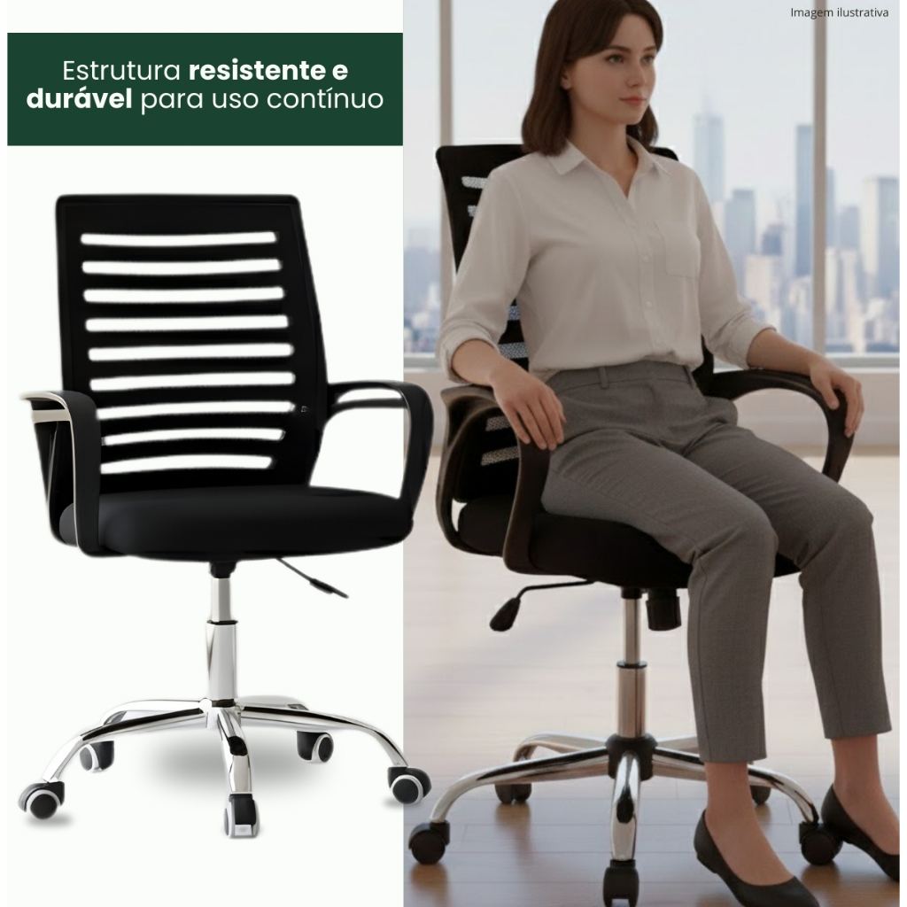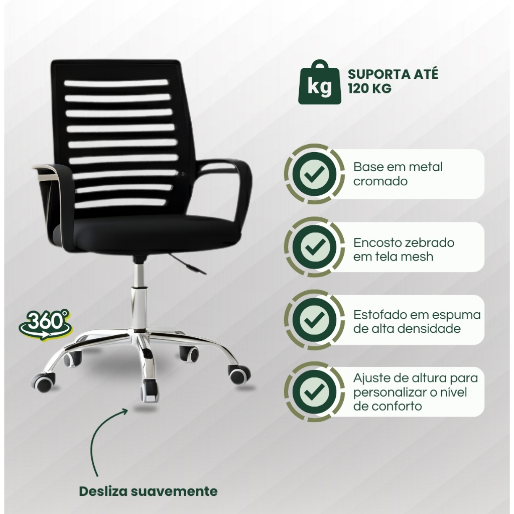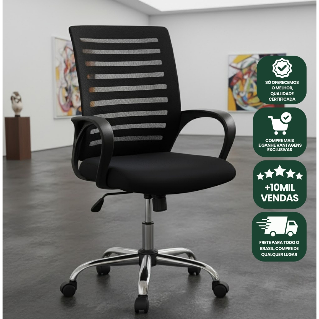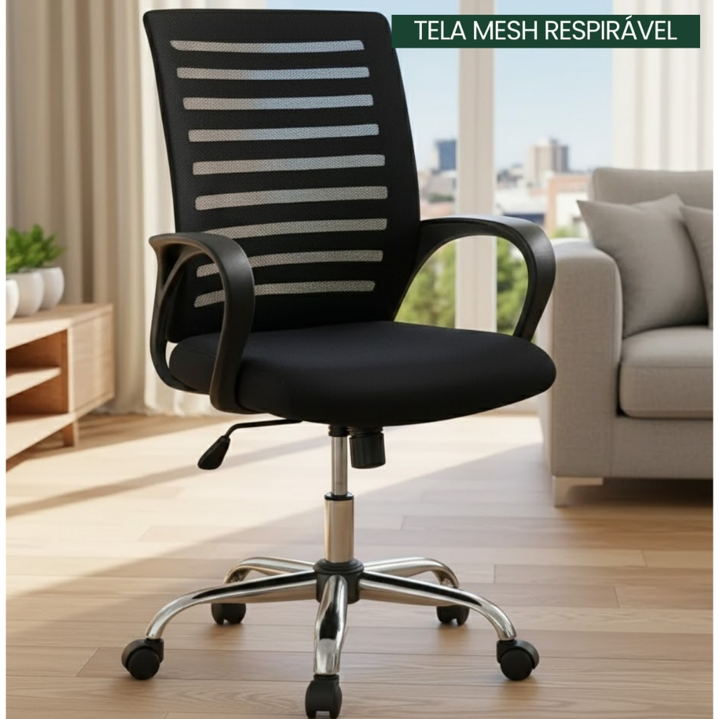 Cadeira De Escritório Giratória Diretor Base Cromada Estofado Mesh Office Preto