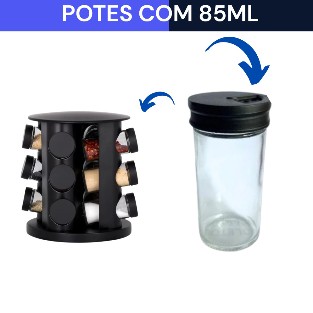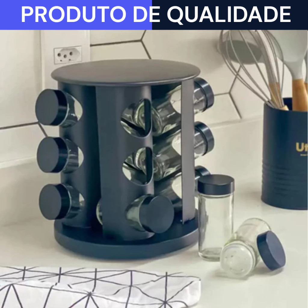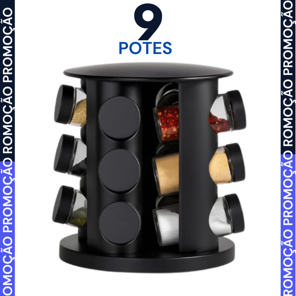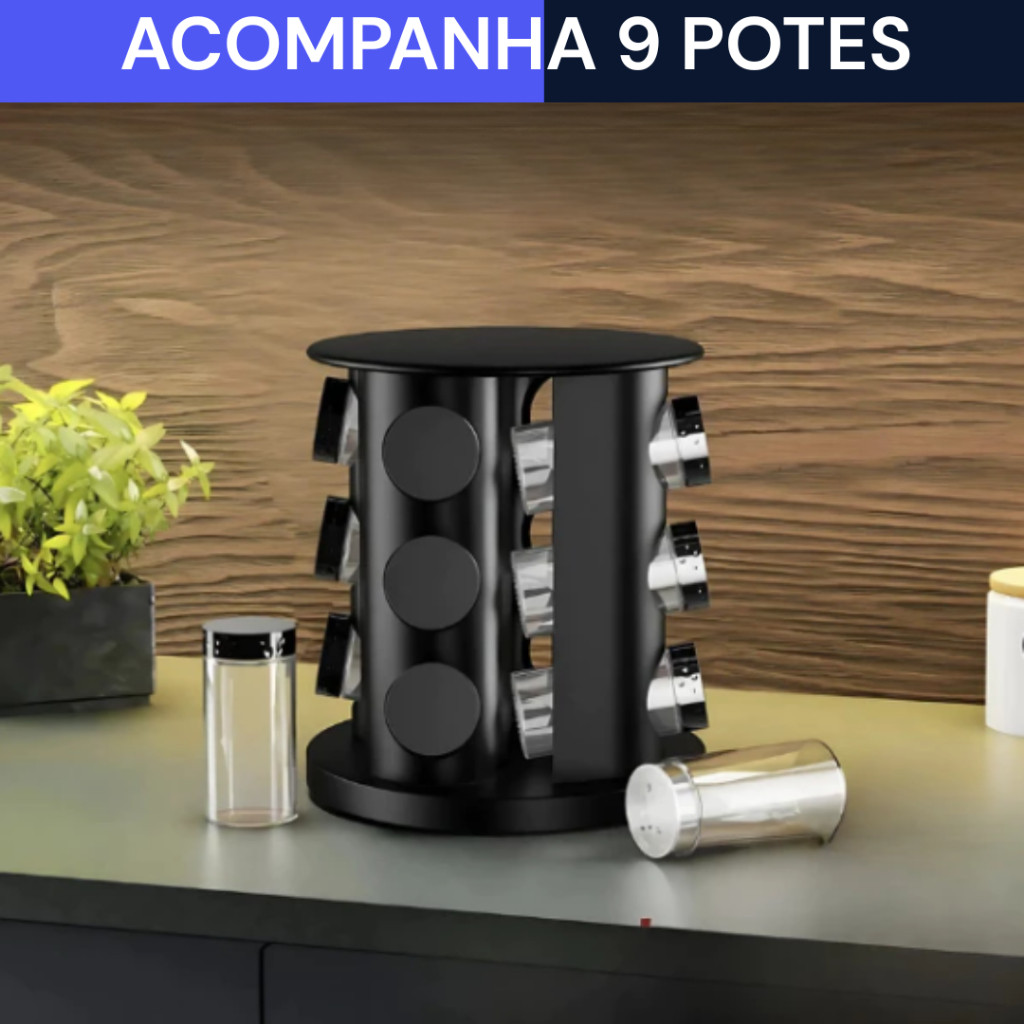 Porta Temperos Profissional Giratório 9 Potes Vidro Tampa Dosadora Condimentos PROMOÇÃO LIMITADA