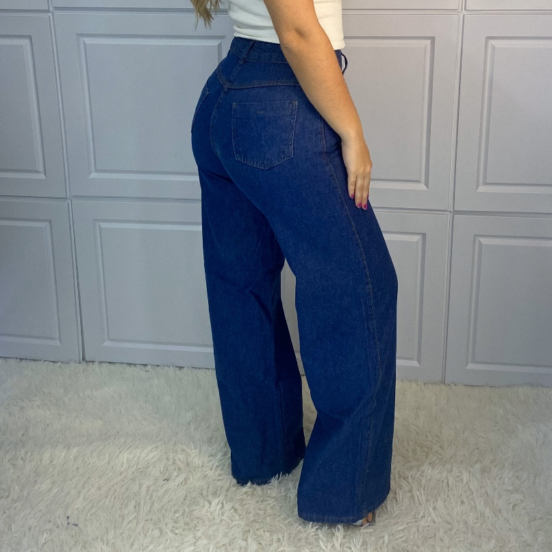 Calça jeans wide leg escura fabricação primeira não elestica