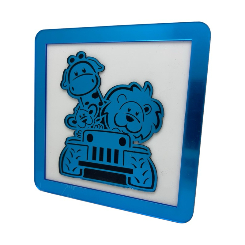 Quadros decorativo Infantil Safari Acrilico Espelhado Azul