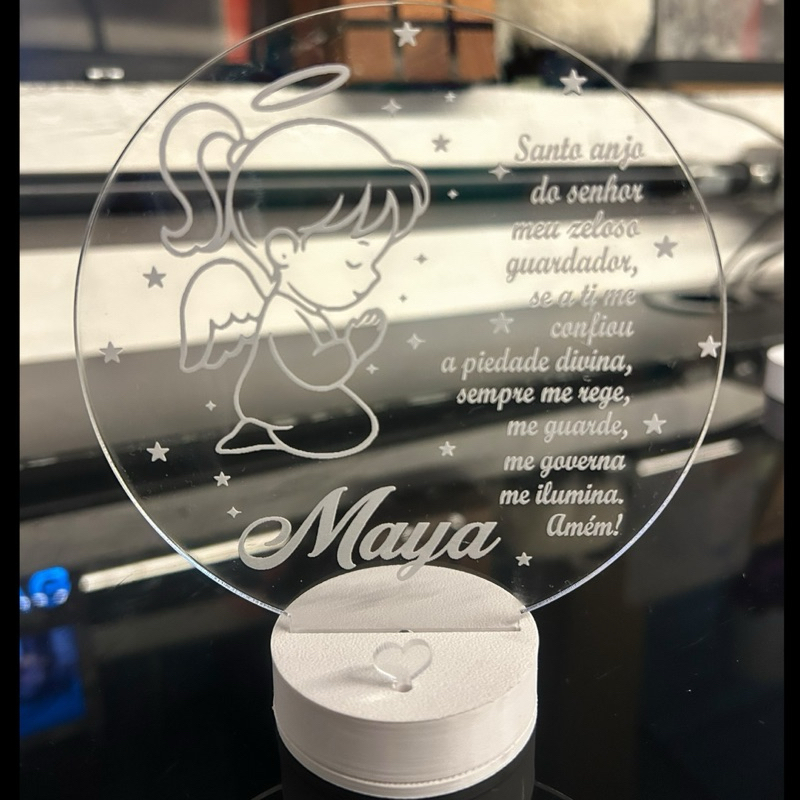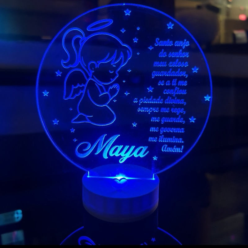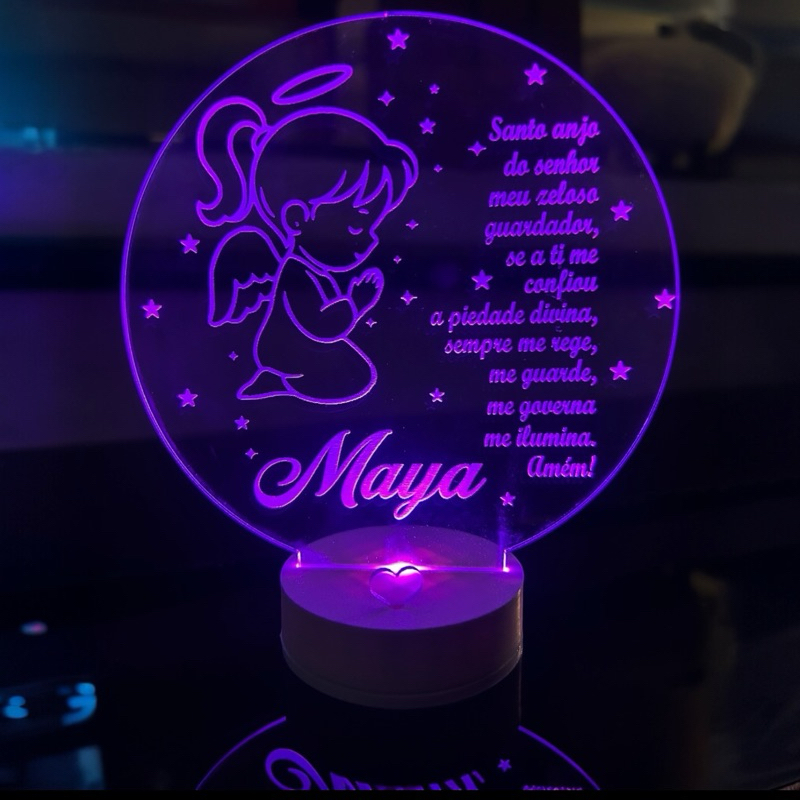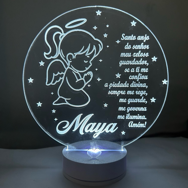 luminária Personalizada 3D Abajur a Bateria ou USB Oração Santo Anjo