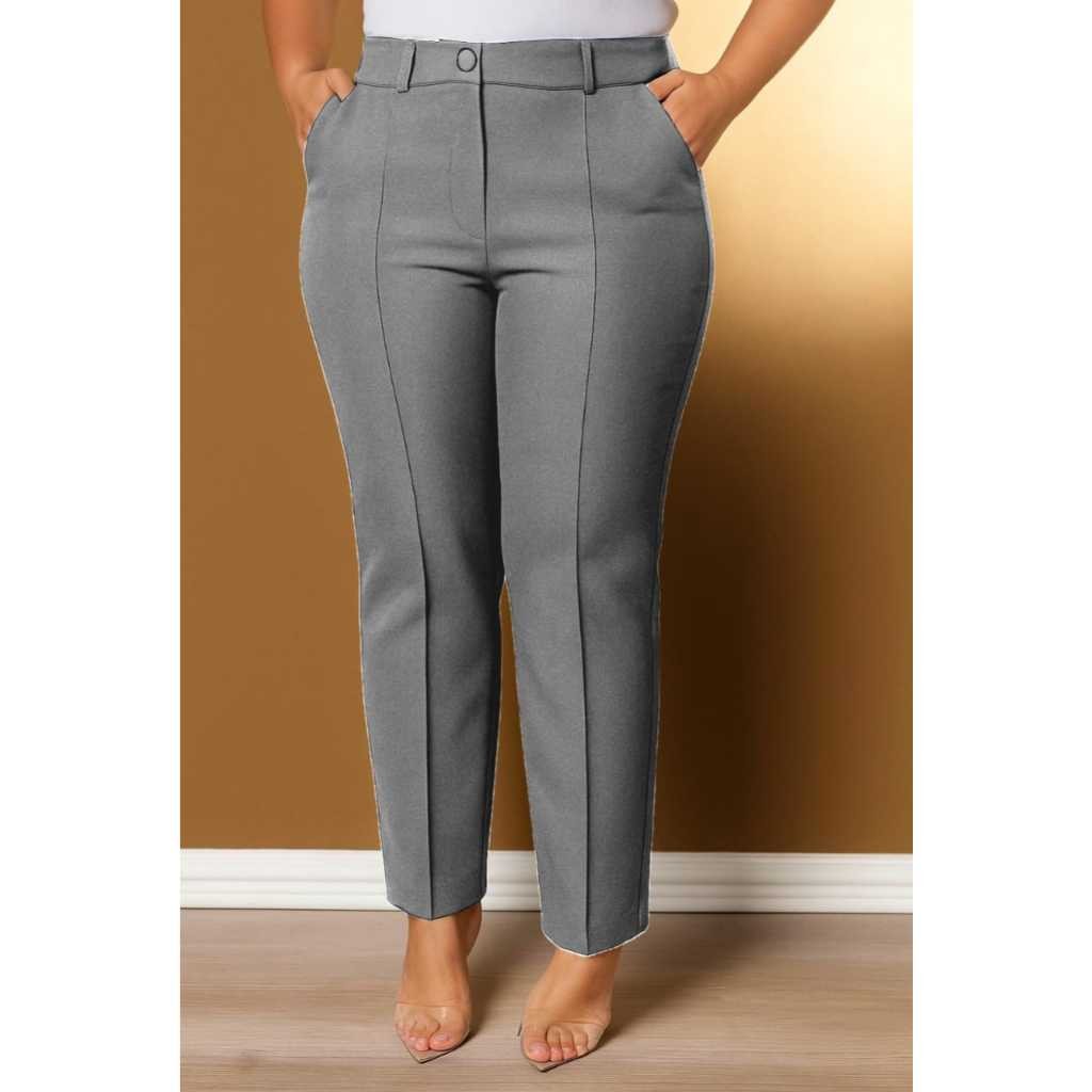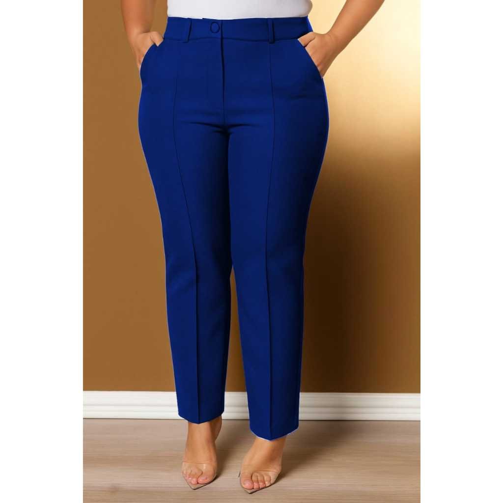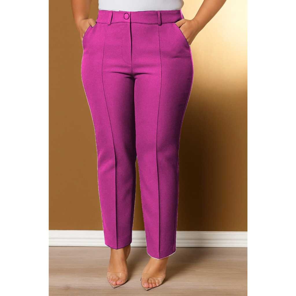 Calça reta tamanho grande alfaiatariaFeminina Risco Elegante plus Size Cintura alta