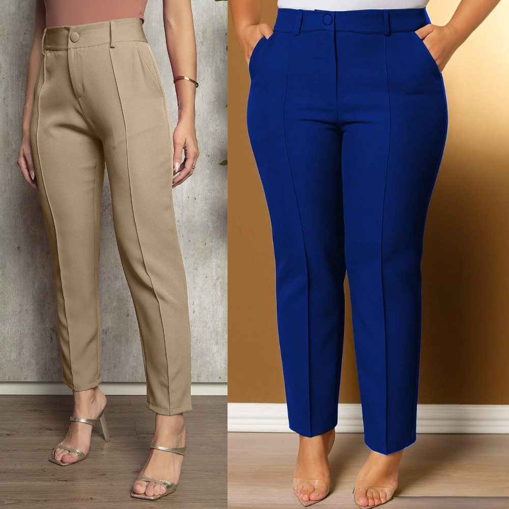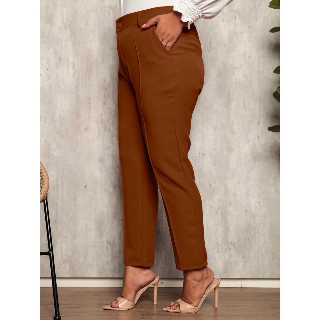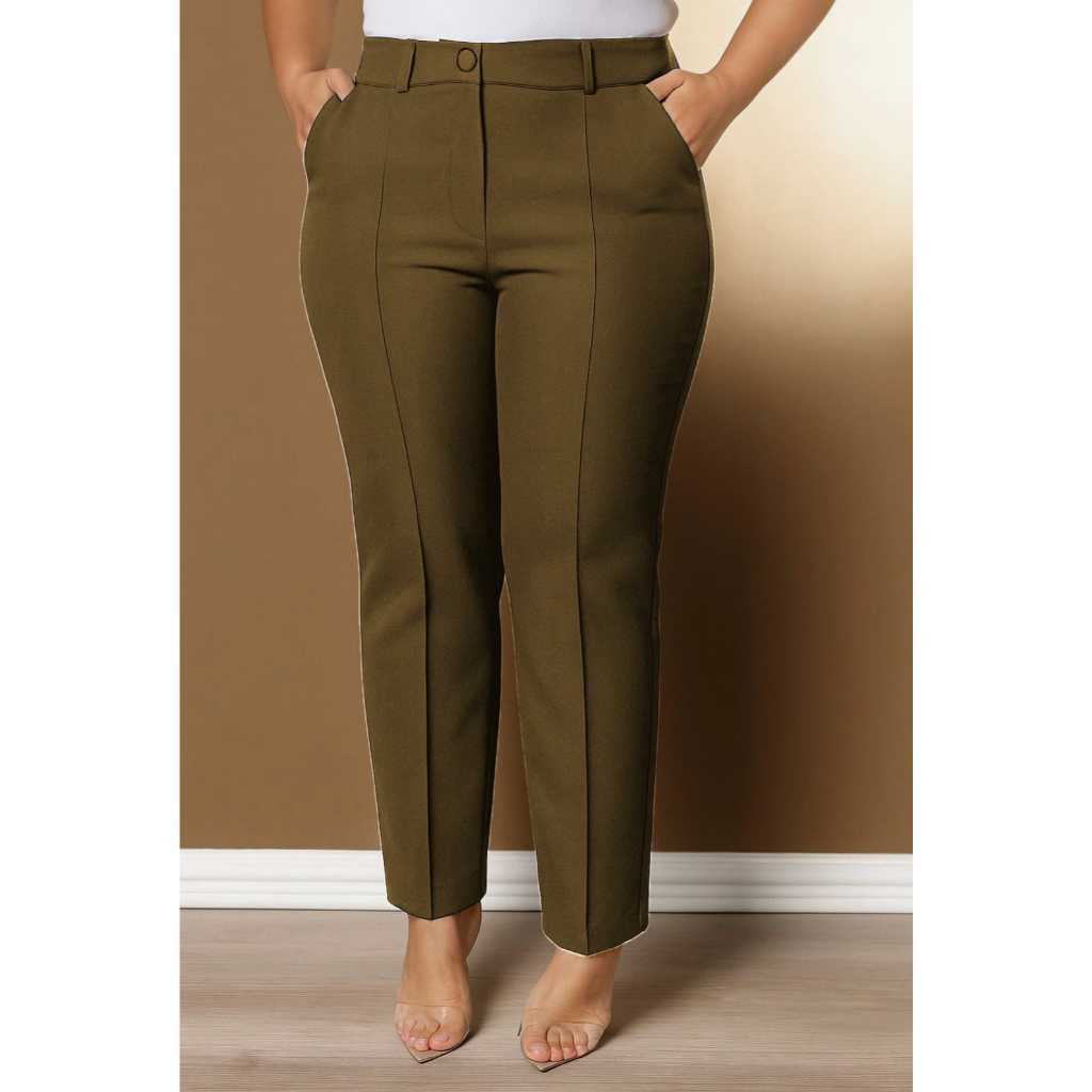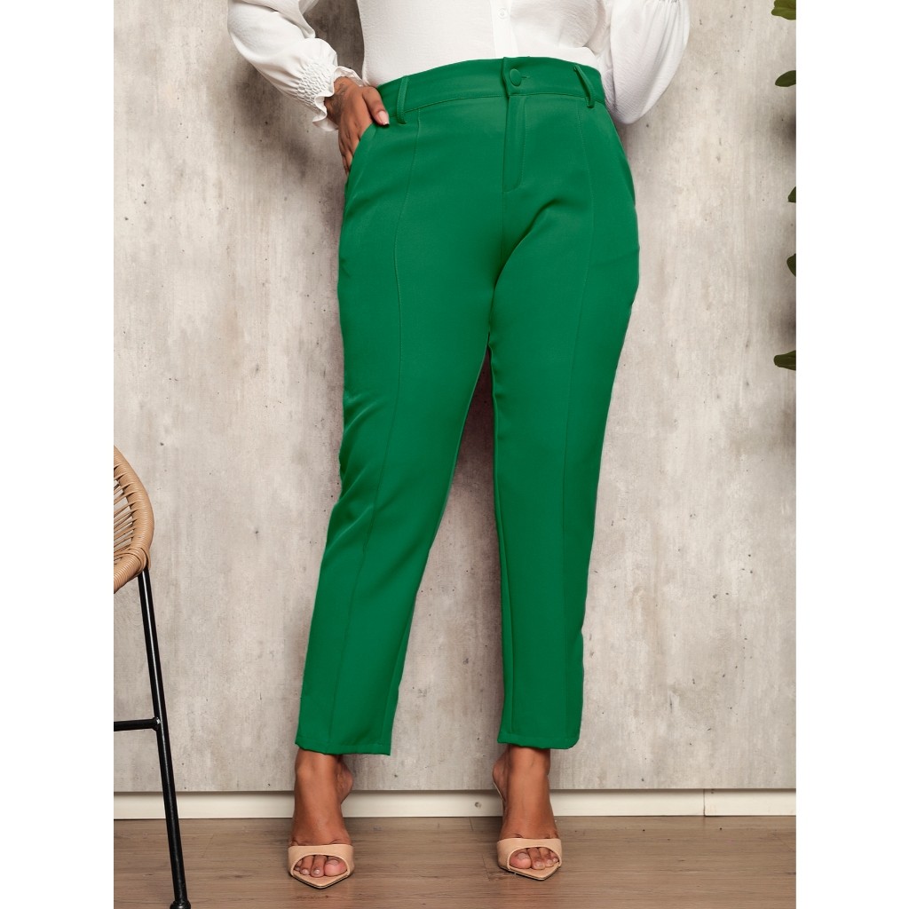 Calça reta tamanho grande alfaiatariaFeminina Risco Elegante plus Size Cintura alta
