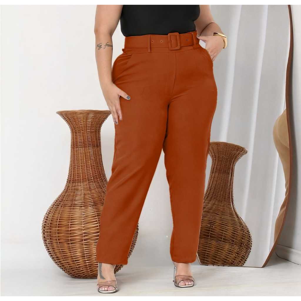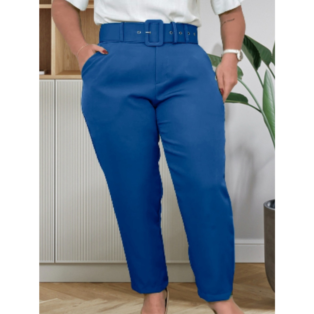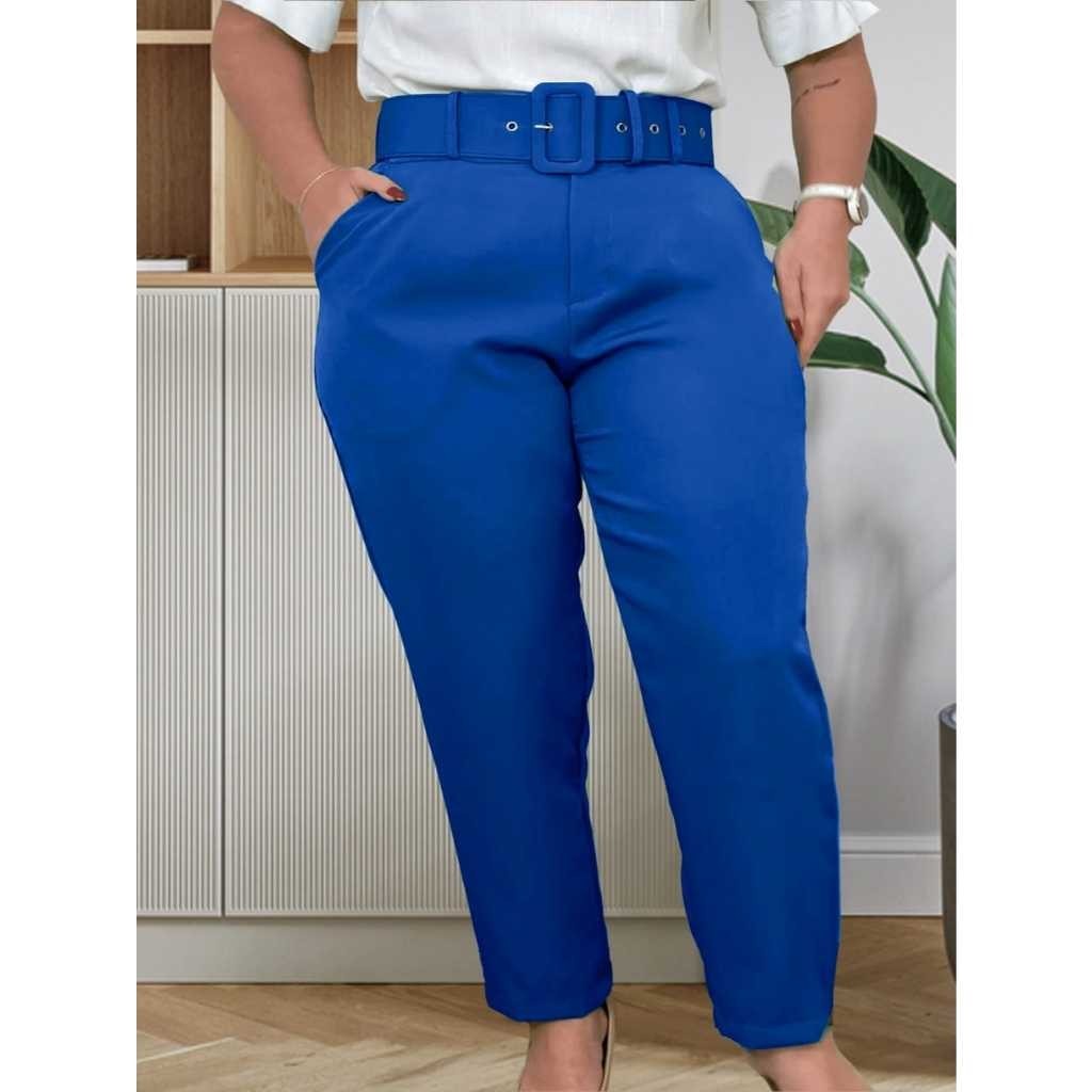 Calças Plus Size Corte Social Alfaiataria com Cinto Elegante Casual Moda Feminina