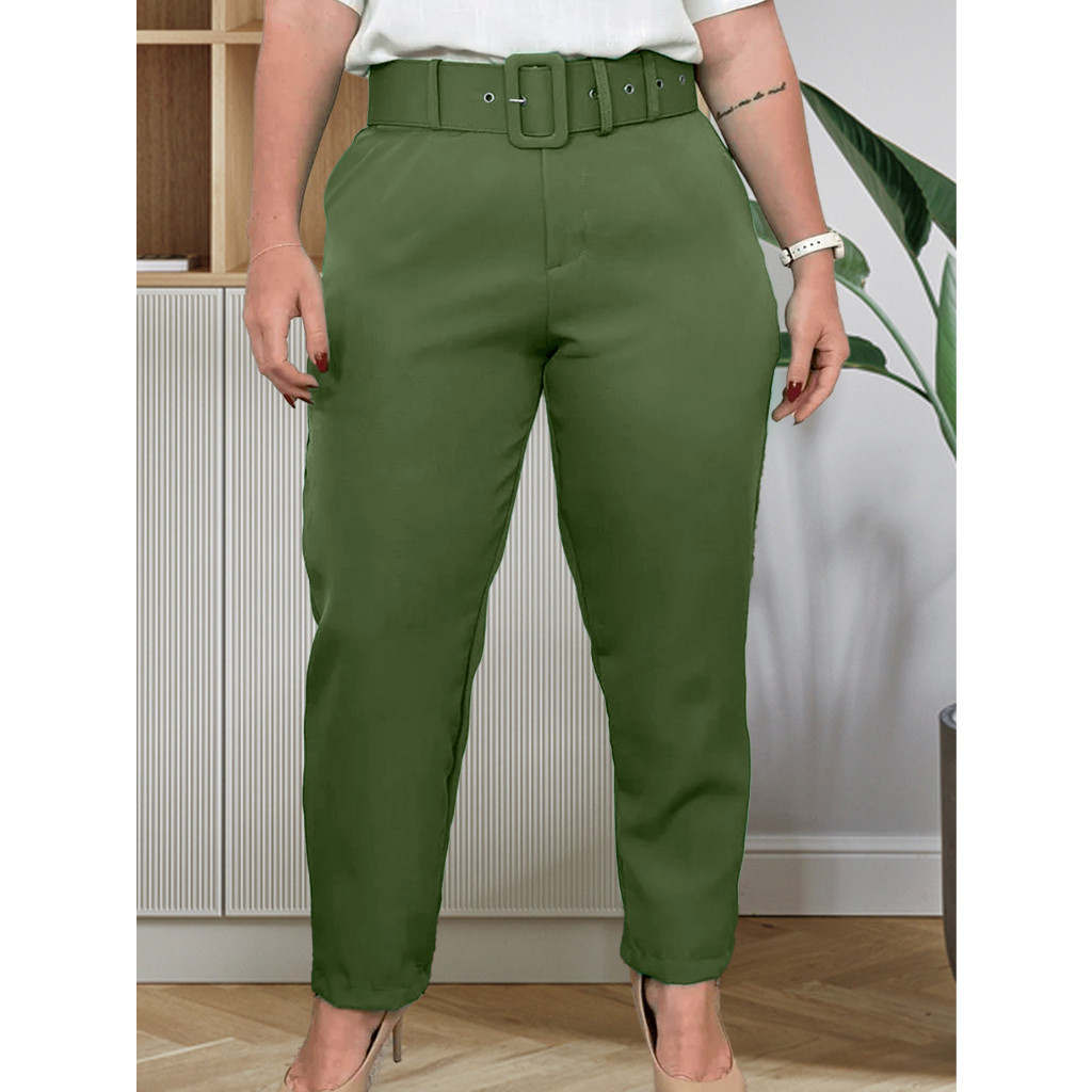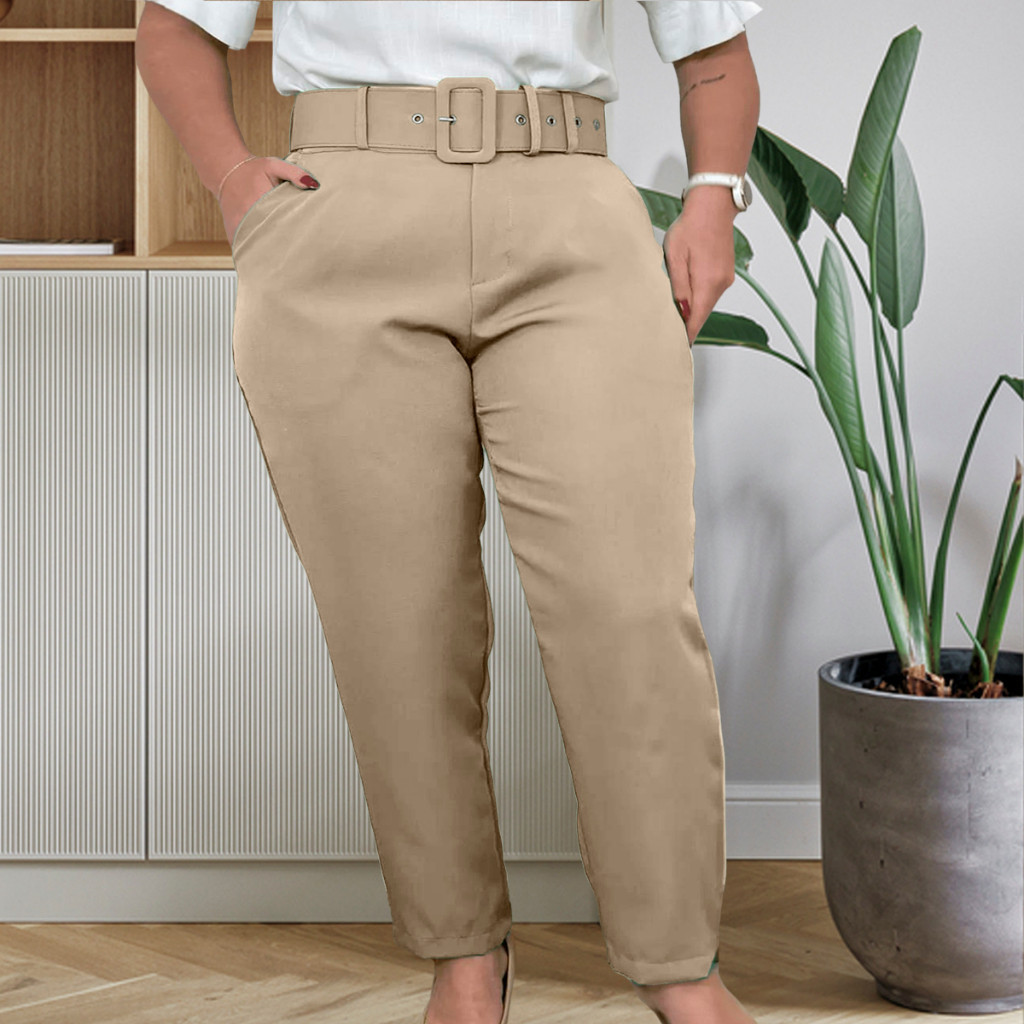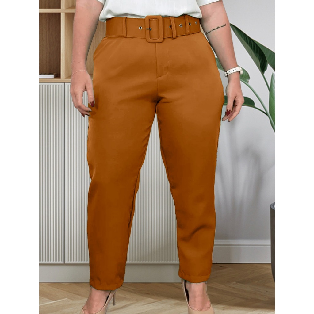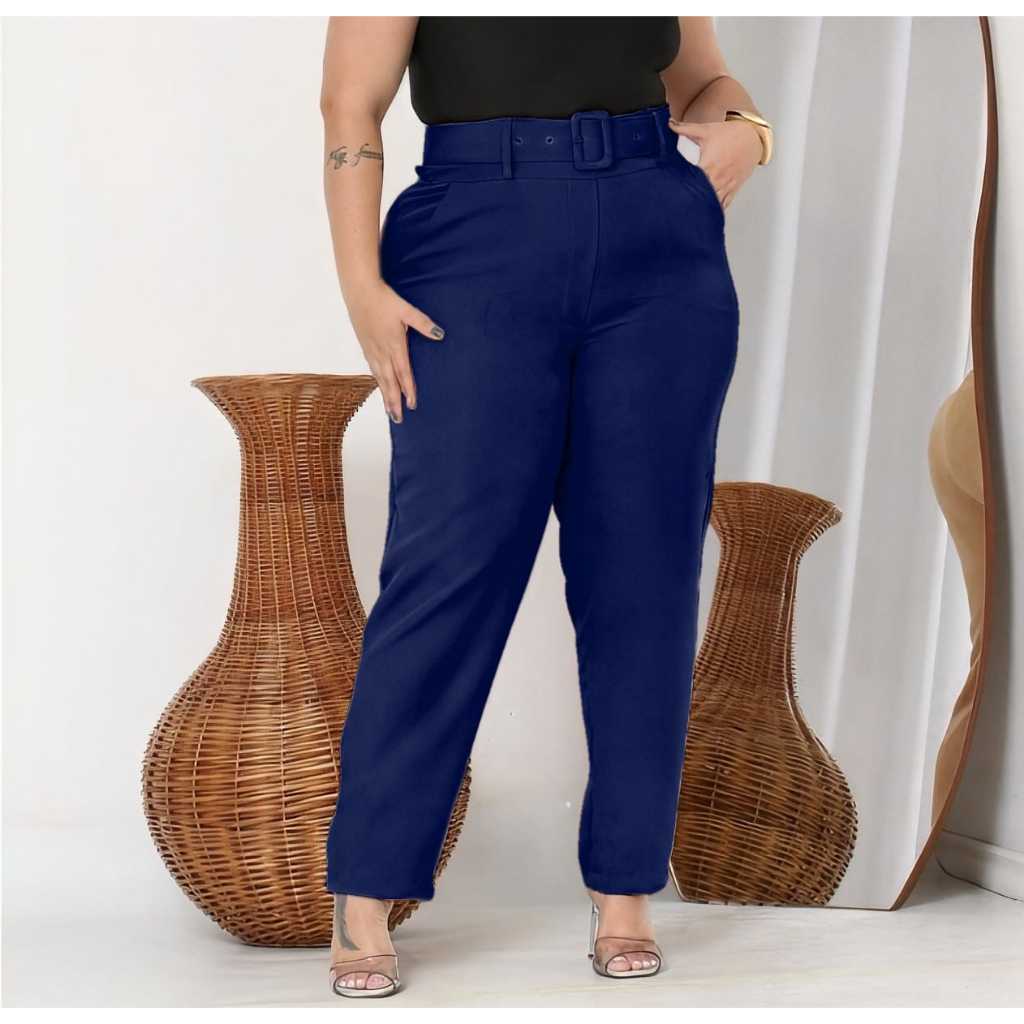 Calças Plus Size Corte Social Alfaiataria com Cinto Elegante Casual Moda Feminina