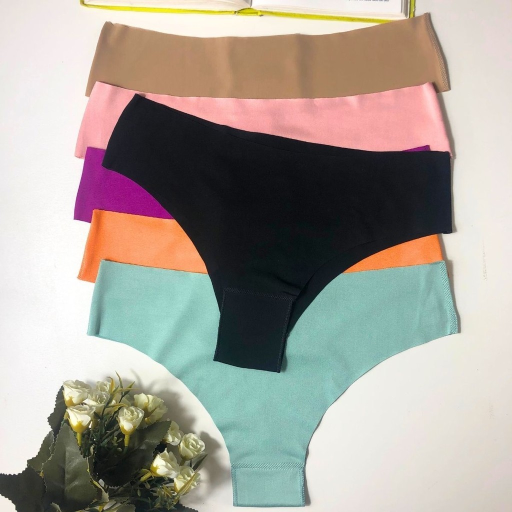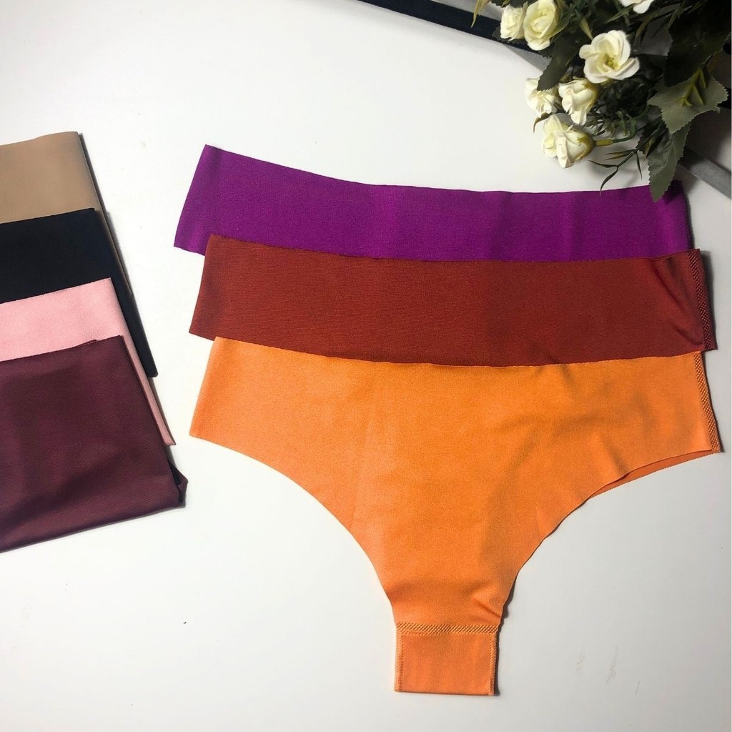 Kit Calcinhas Sem Costura Tanga Forro 100% Algodão Calcinha Corte a Laser Não Marca Lisa Poliamida