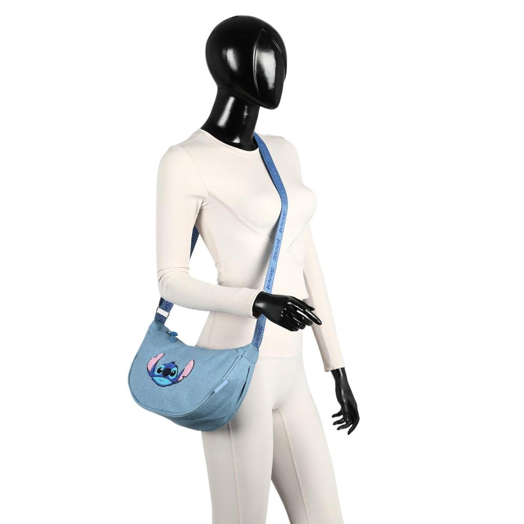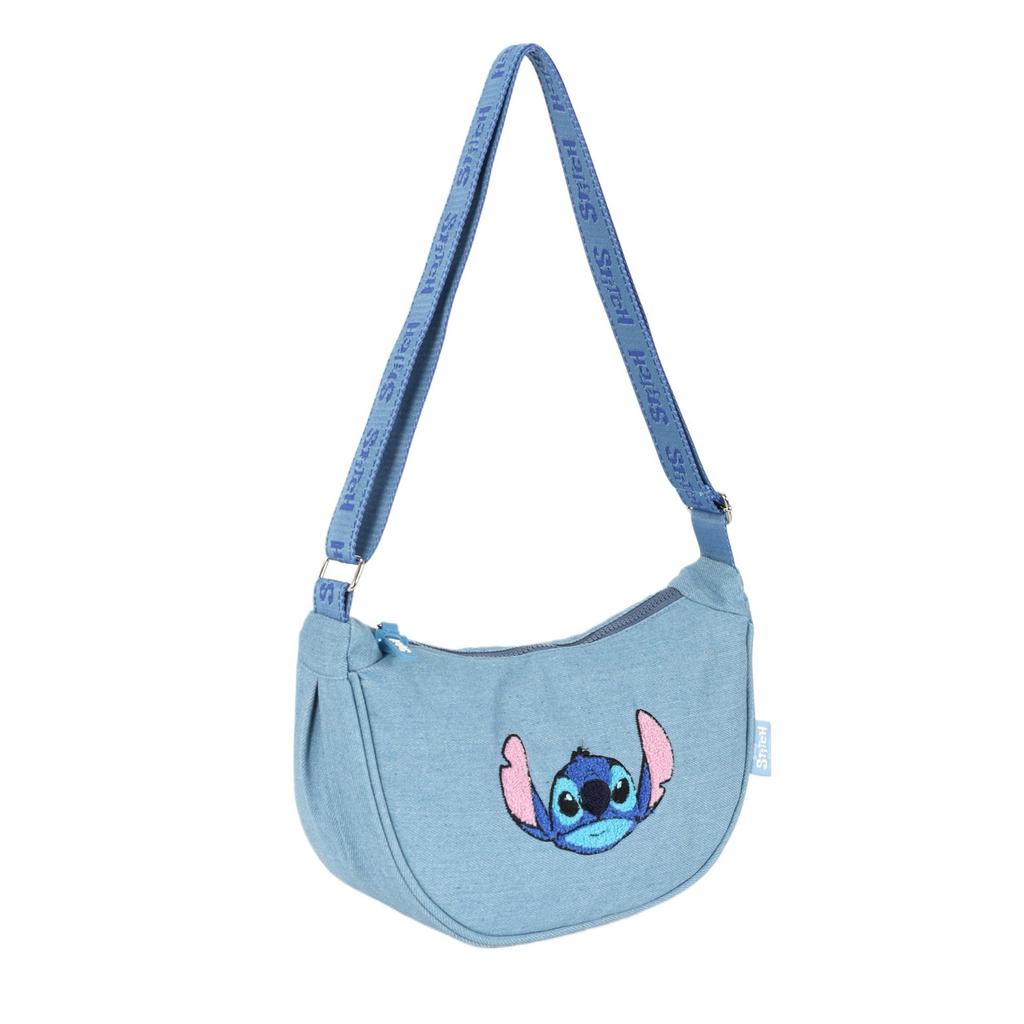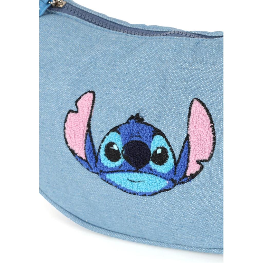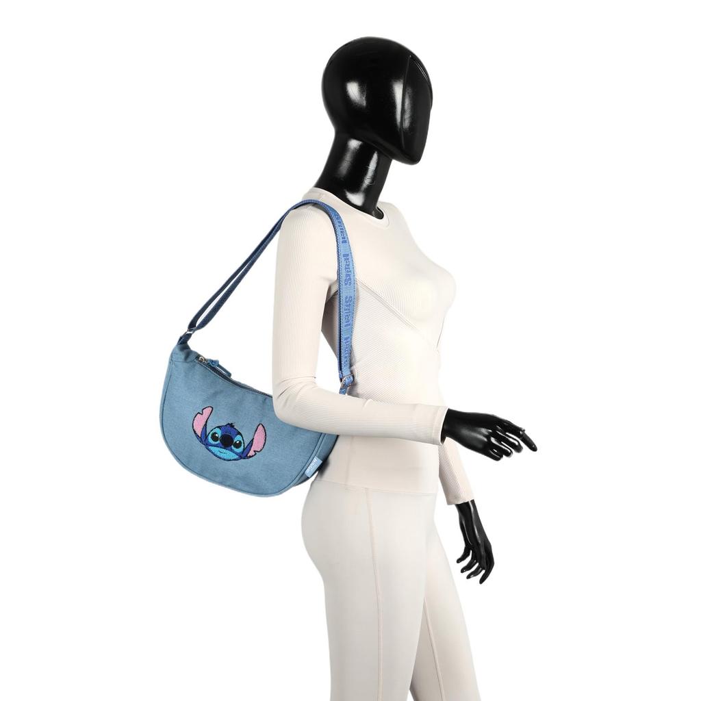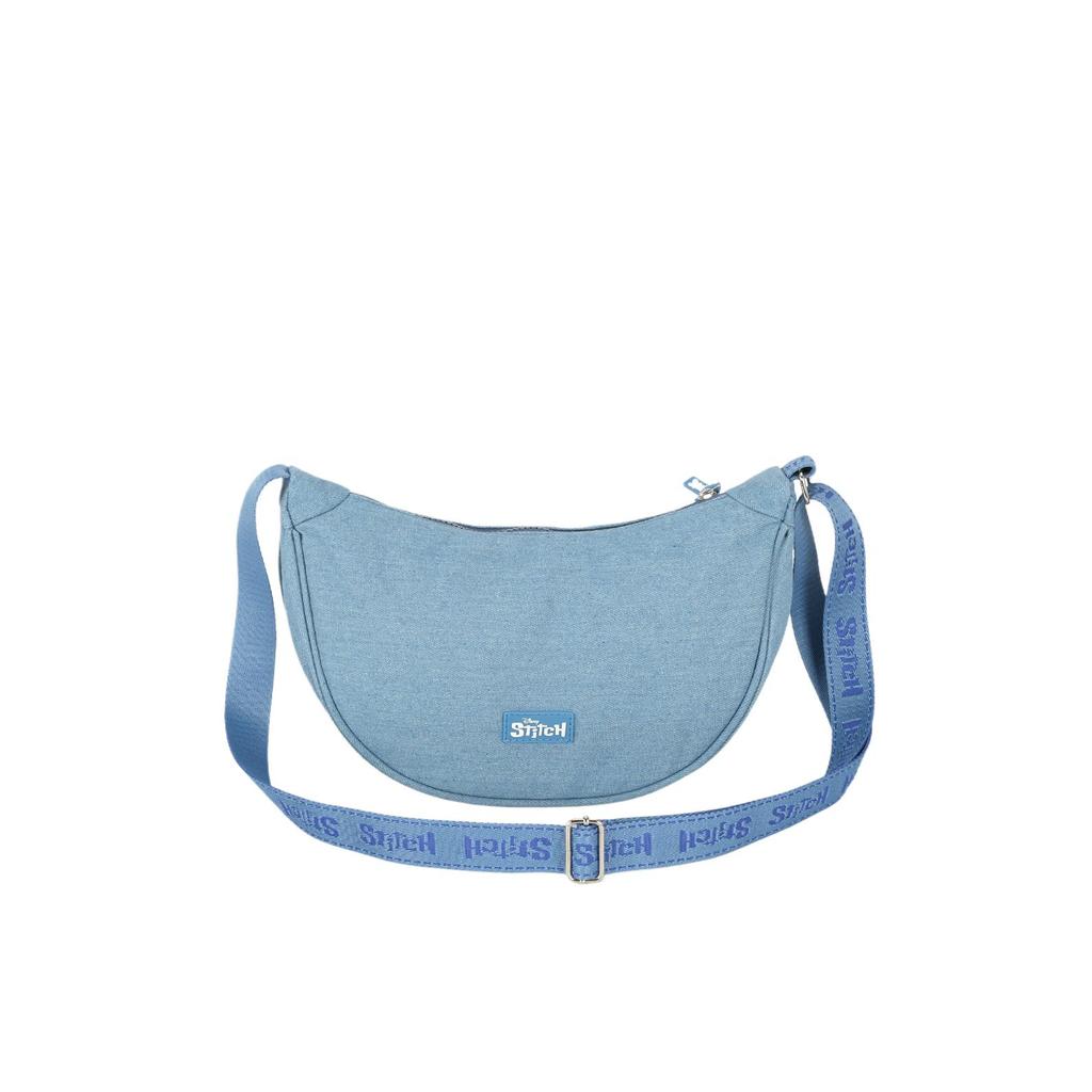 Bolsa Transversal Jeans Meia Lua Stitch Disney