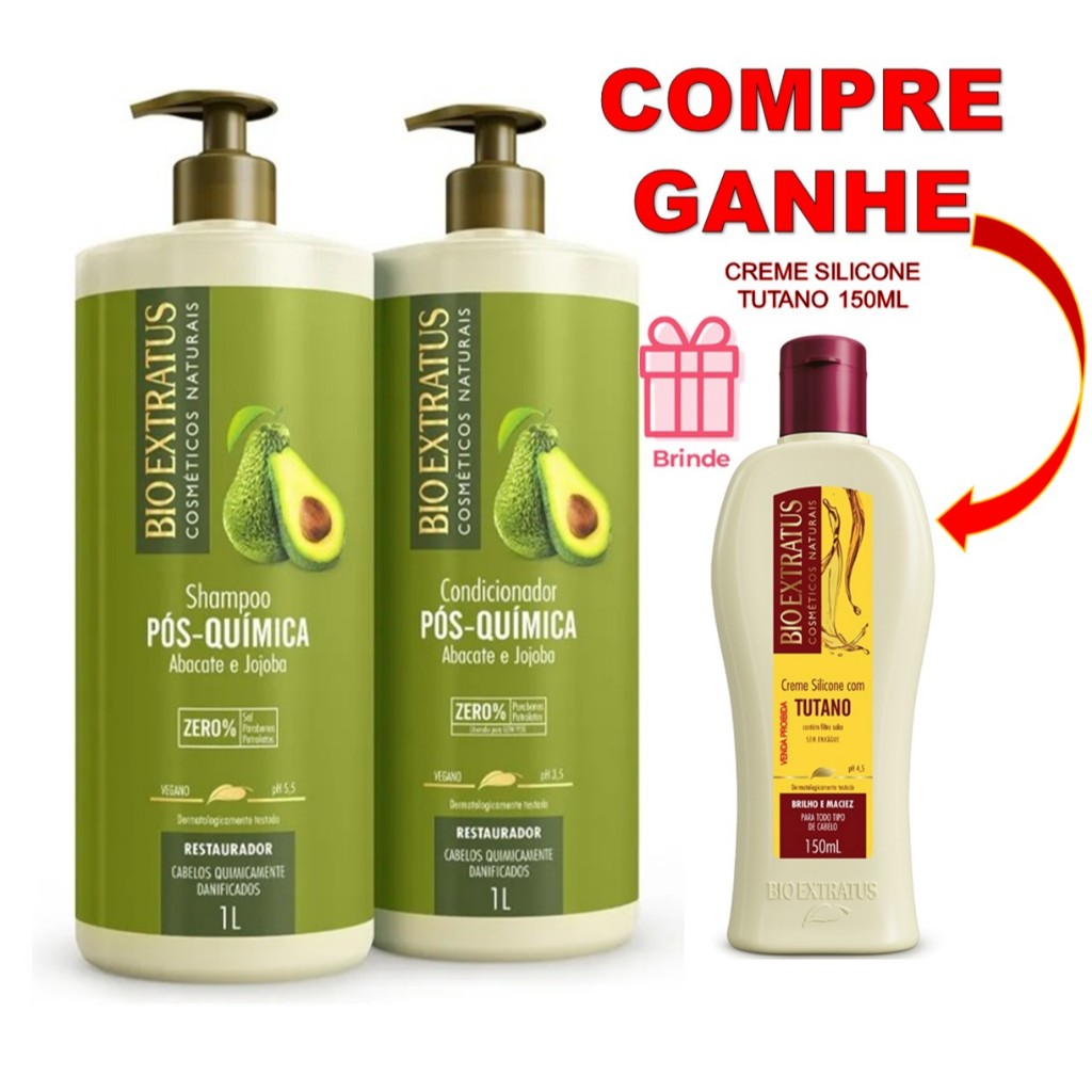 kIT 2 LITROS PÓS QUÍMICA BIO EXTRATUS: SH 1L+COND 1L + BRINDE 🎁CREME DE SILICONE TUTANO