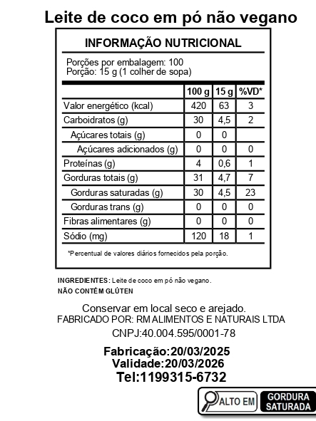 Leite de Coco em Pó (Sem Maltodextrina) - 500g a 2Kg - LEIA A DESCRIÇÃO
