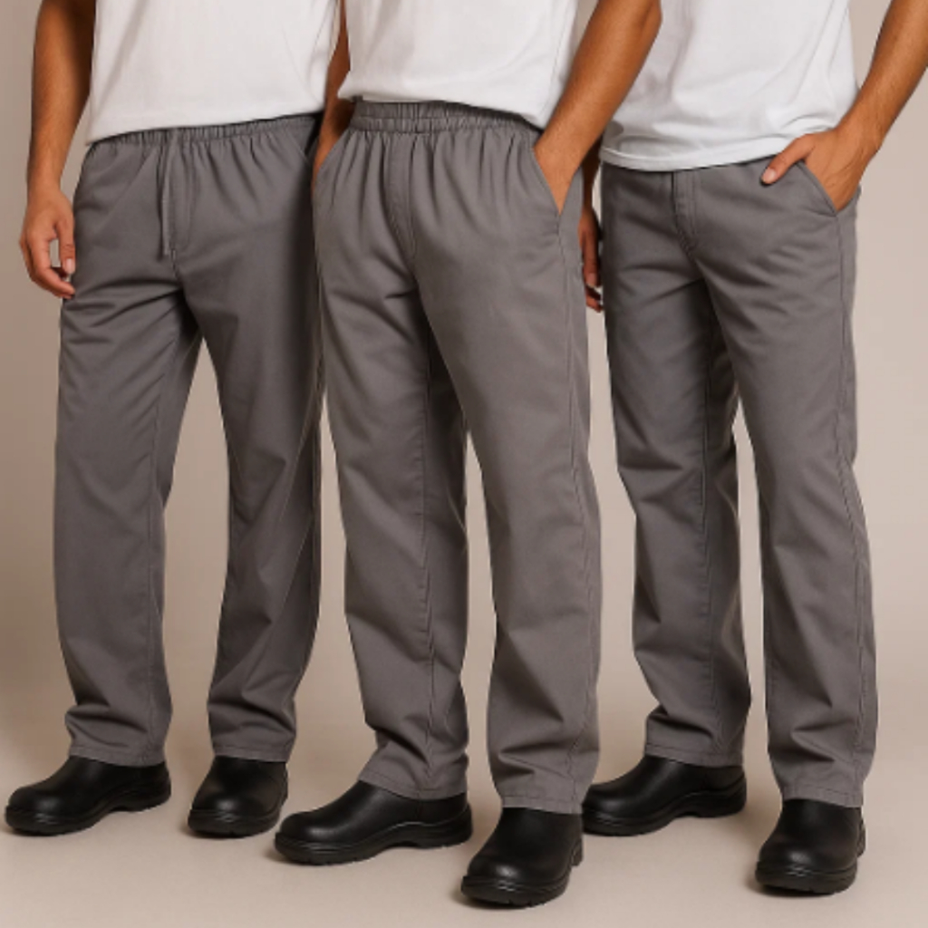 KIT 3 Calças Brim REFORÇADA P/ Trabalho Pesado | Uniforme Profissional C/ ELÁSTICO & Reforço