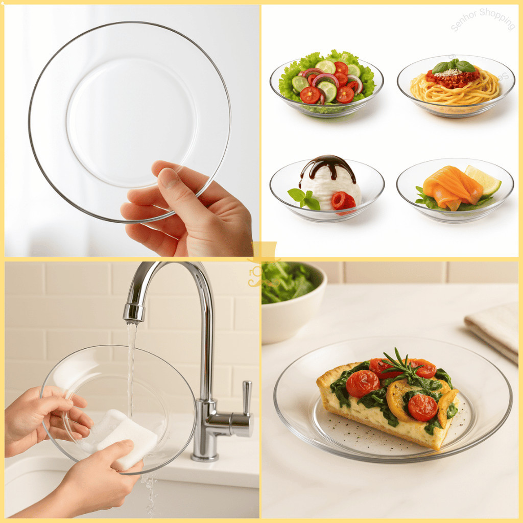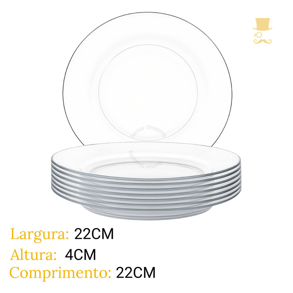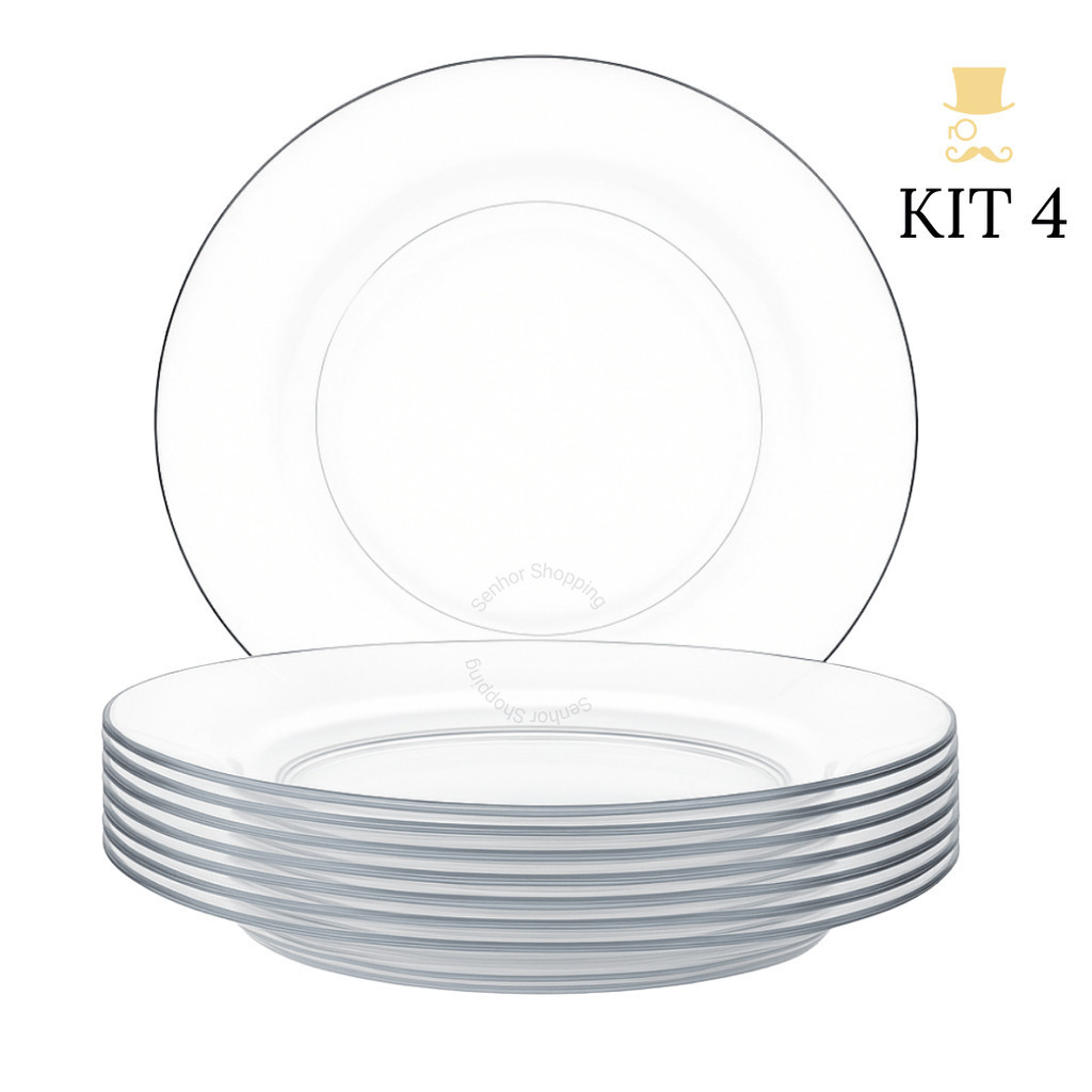 Kit 4/8/12 Pratos Fundo Liso de Vidro - Transparente e Resistente