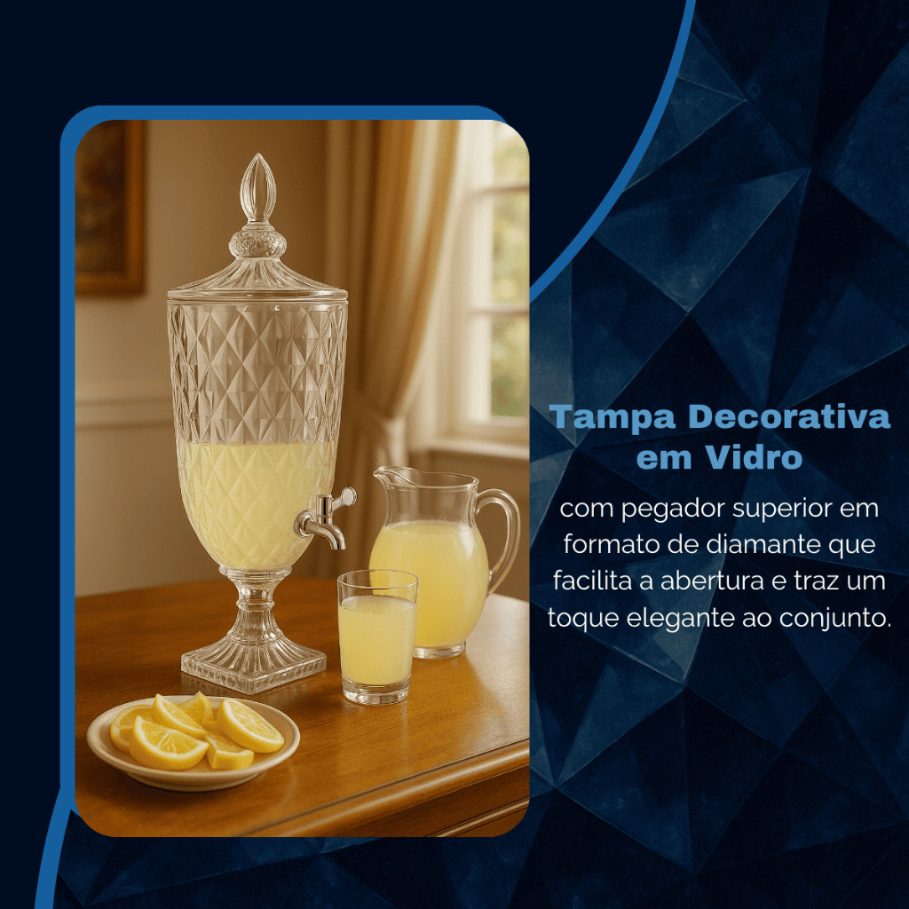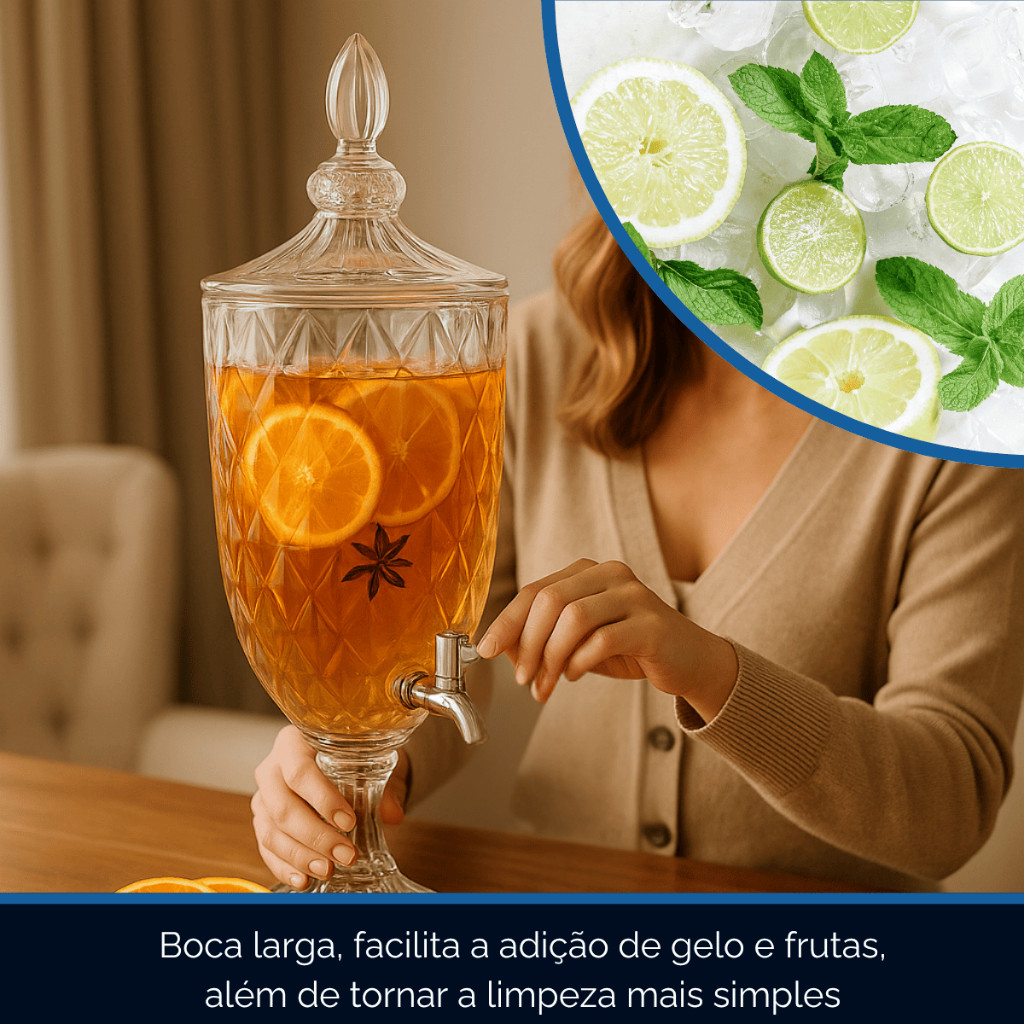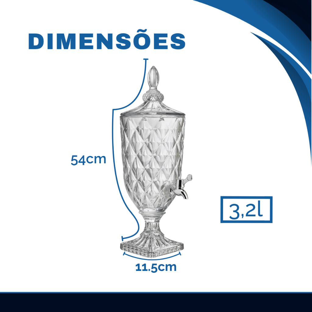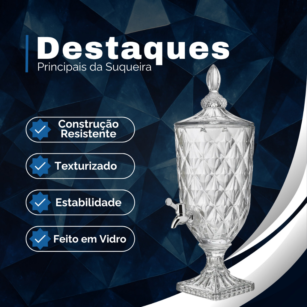 Suqueira Dispenser De Vidro 3,2L Diamond Transparente Luxo Com Torneira Diamante Buffet Festa