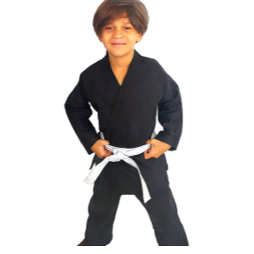 Kimono Krav Maga infantil branco e preto brim alta qualidade e resistência com faixa branca lisa