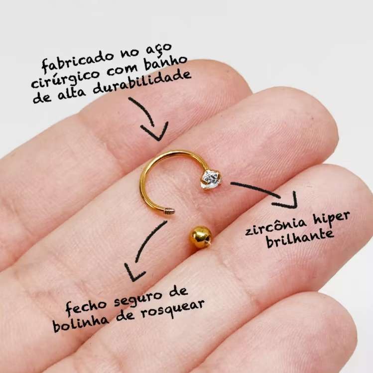 Piercing Ferradura Fina para NarizAçoGold comZircônia