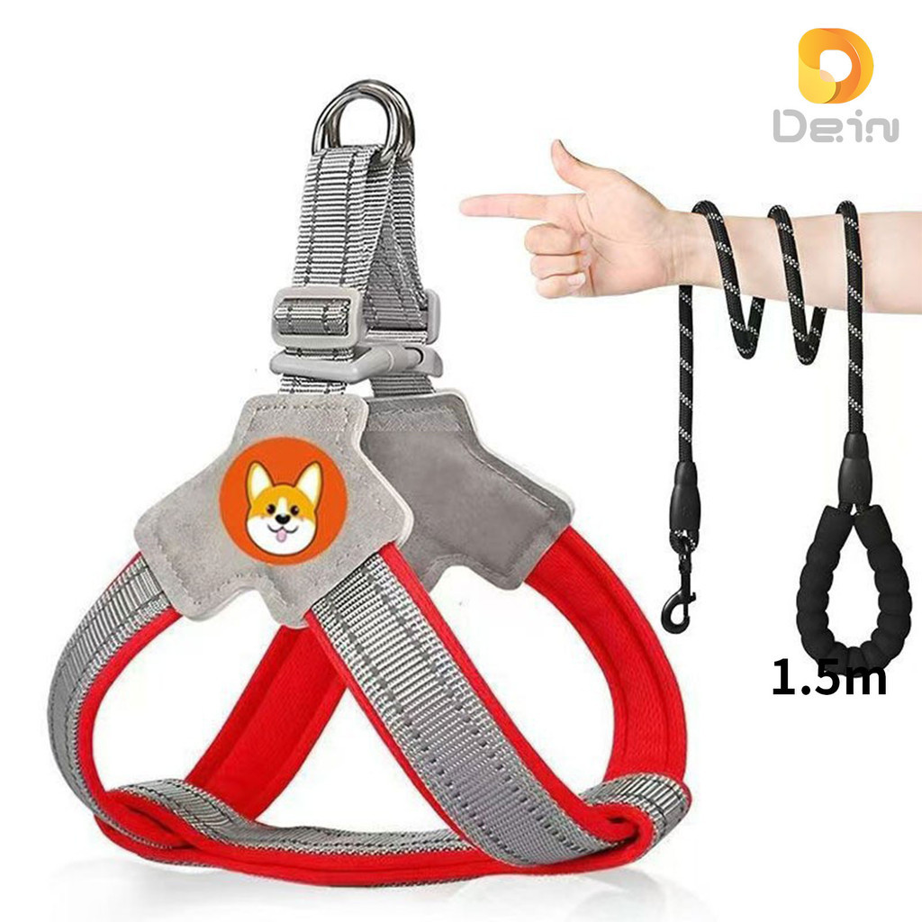 Peitoral Refletivo para Cães com Guia 1,5m – Ajustável, Seguro e Confortável