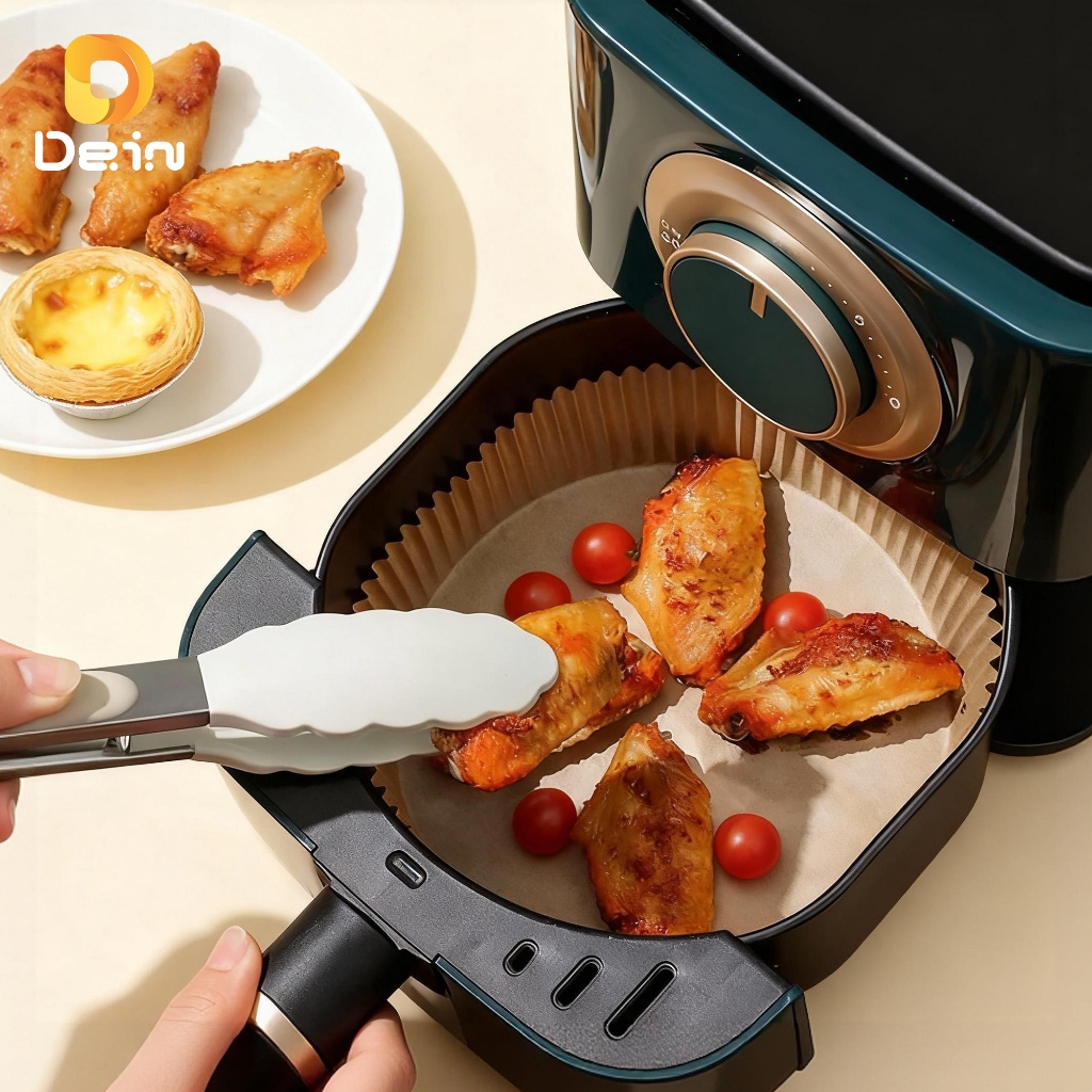 Kit 100 forma de airfryer descartavel antiaderente de papel cozinha quadrado fritadeira cozimento
