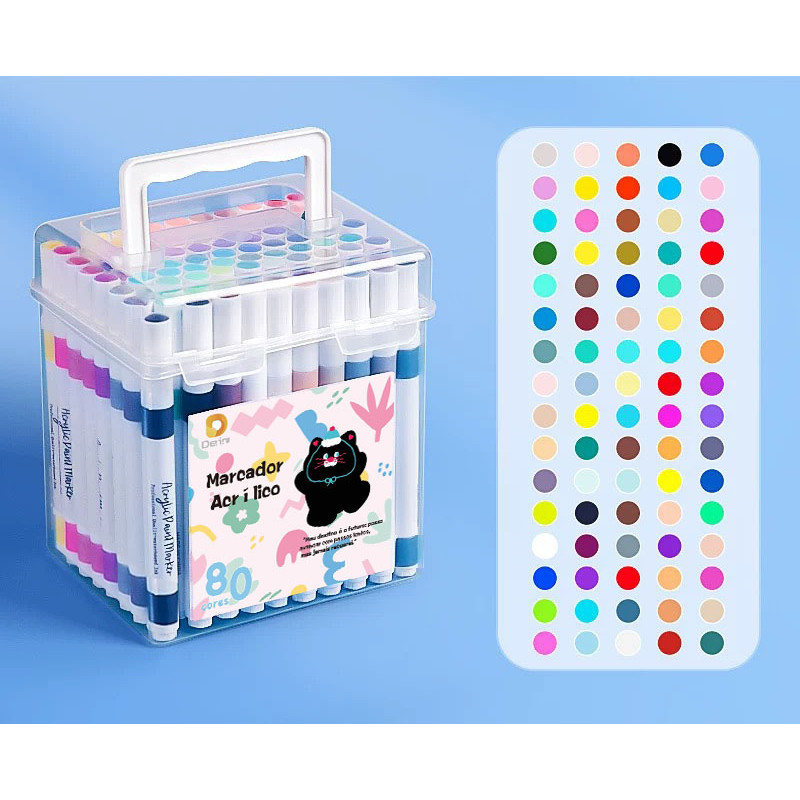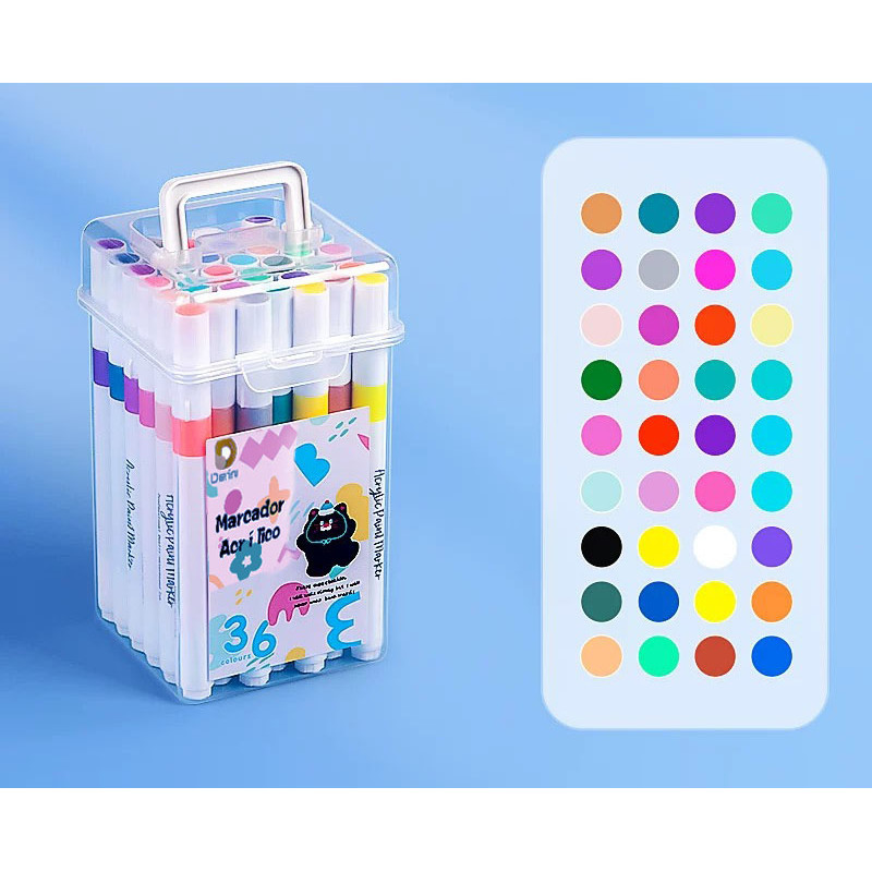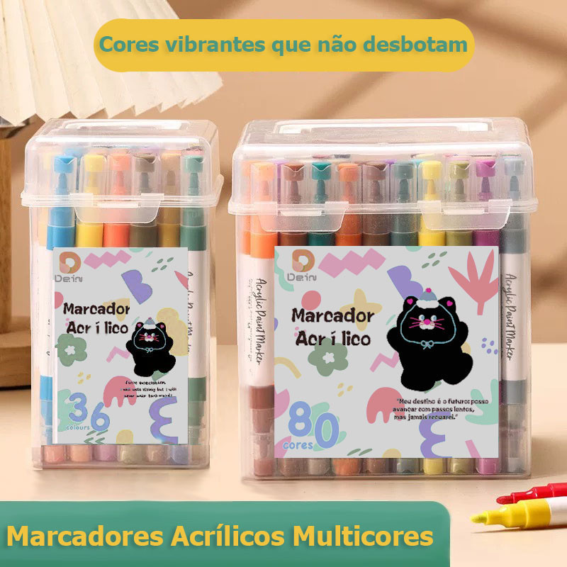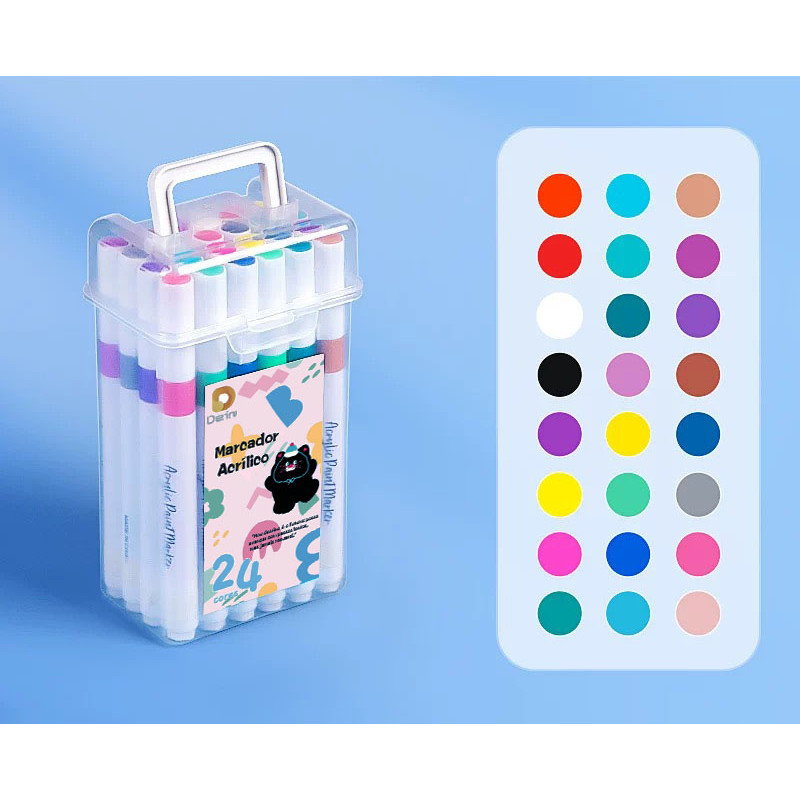 Kit 24 Marcadores Tinta Acrílica Caneta Brush Canetinha Pintar Aquarela Plástico Esola Escritório