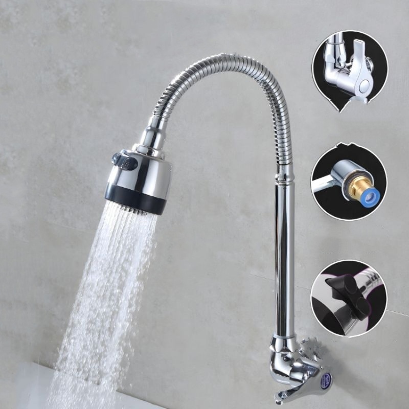 Torneira cozinha parede Chuveirinho para pia de cozinha flexível prata