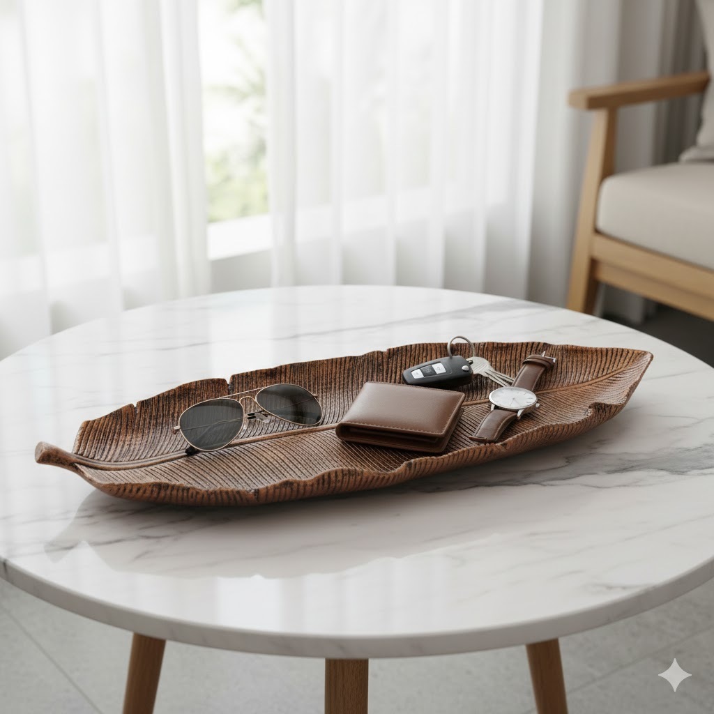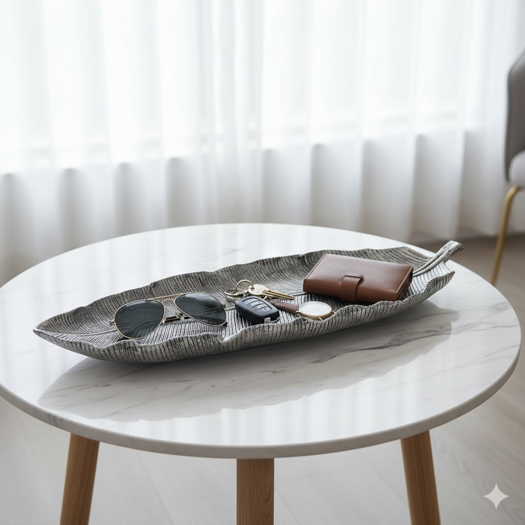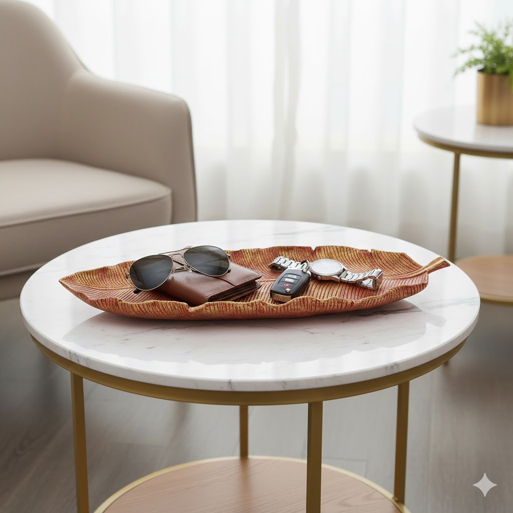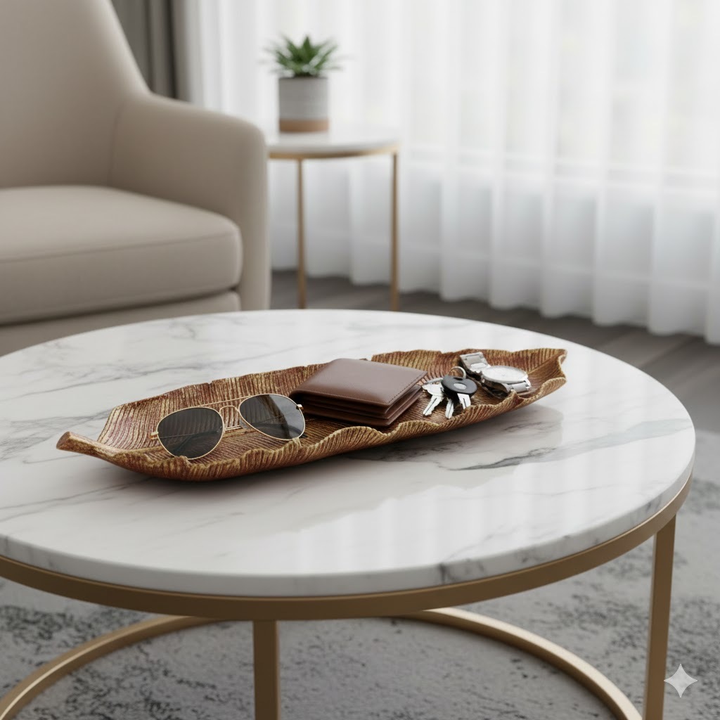 Centro de Mesa Bandeja Folha Grande em Resina 44cm Decorativa para Casa Diversas Cores