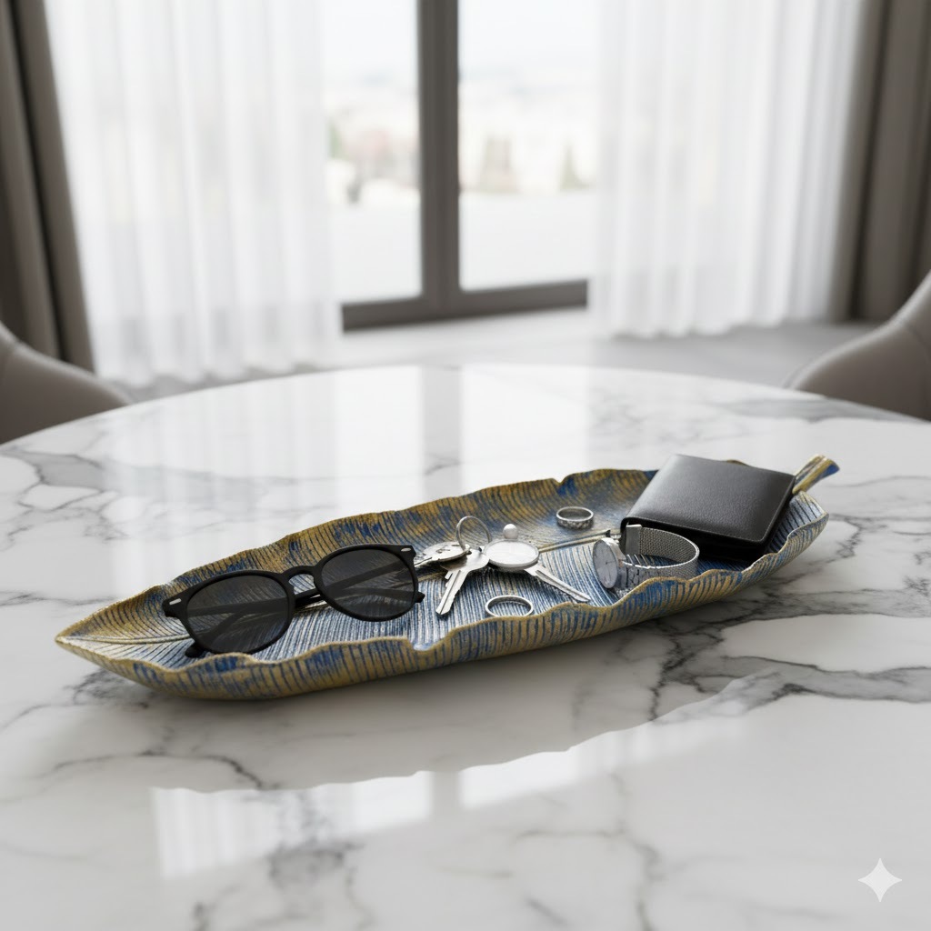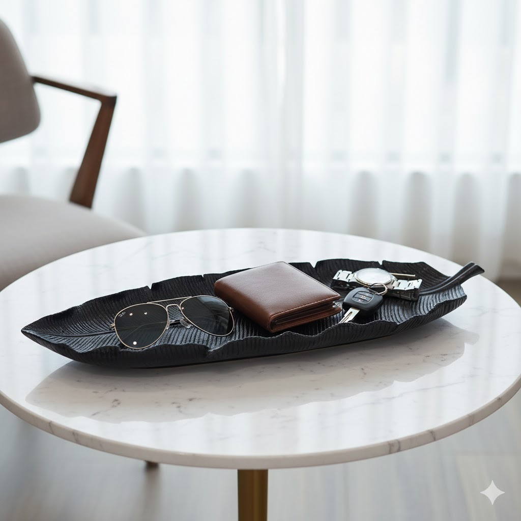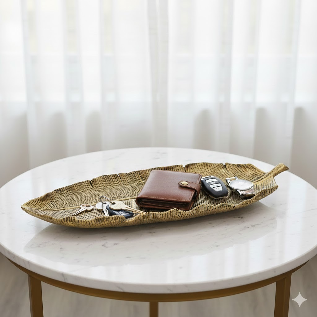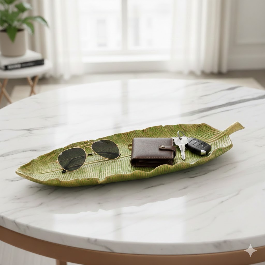 Centro de Mesa Bandeja Folha Grande em Resina 44cm Decorativa para Casa Diversas Cores